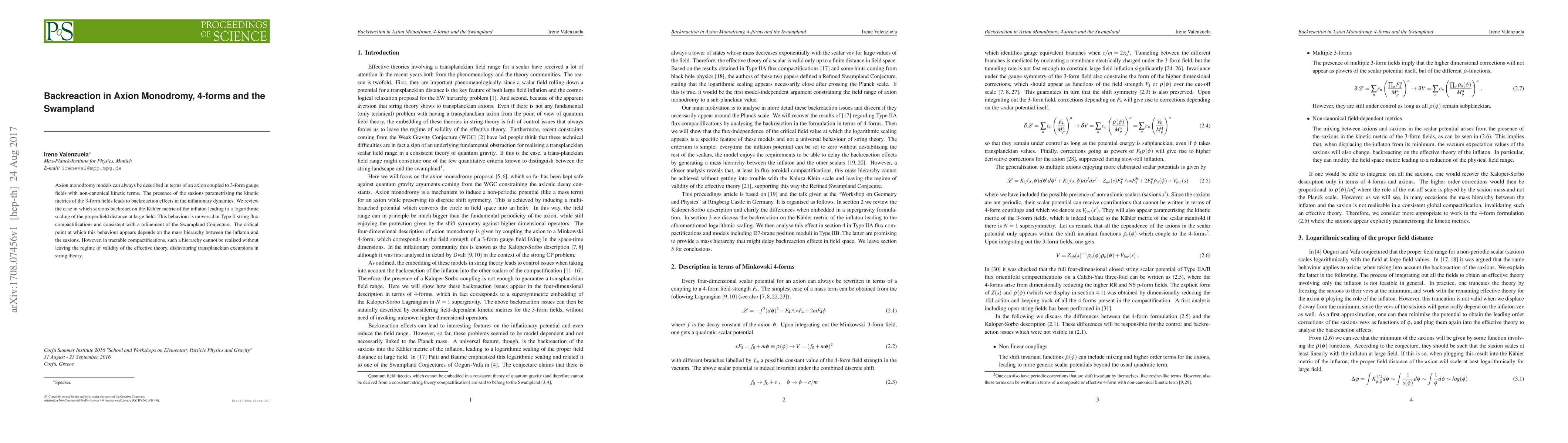 Axion monodromy models can always be described in terms of an axion coupled to 3-form gauge fields with non-canonical kinetic terms. The presence of the saxions parametrising the kinetic metrics of the 3-form fields leads to backreaction effects in the inflationary dynamics. We review the case in which saxions backreact on the K\"ahler metric of the inflaton leading to a logarithmic scaling of the proper field distance at large field. This behaviour is universal in Type II string flux compactifications and consistent with a refinement of the Swampland Conjecture. The critical point at which this behaviour appears depends on the mass hierarchy between the inflaton and the saxions. However, in tractable compactifications, such a hierarchy cannot be realised without leaving the regime of validity of the effective theory, disfavouring transplanckian excursions in string theory.
