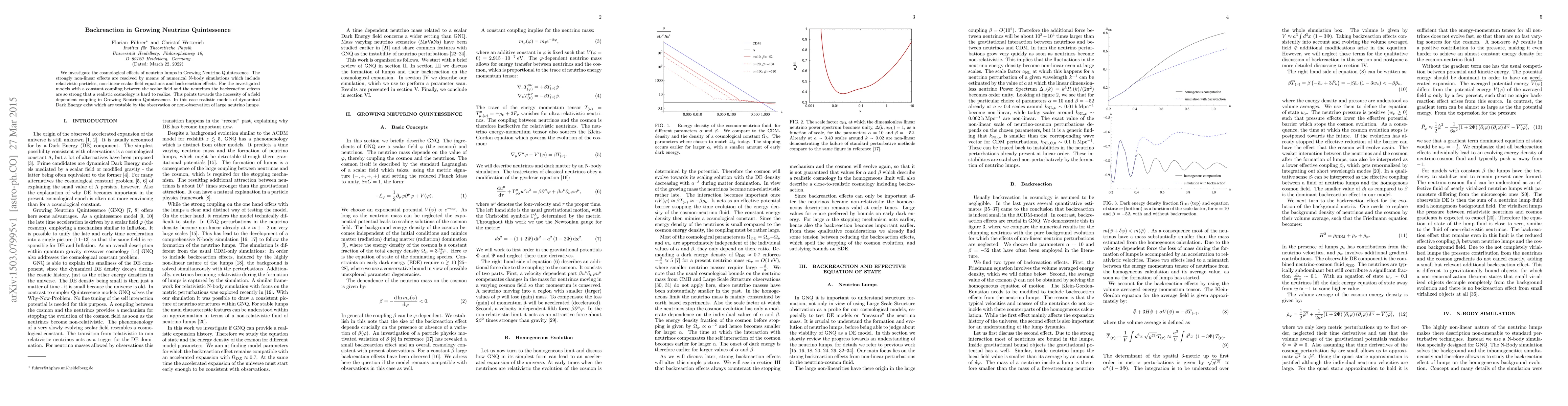 This paper examines the cosmological impact of neutrino lumps in Growing Neutrino Quintessence, using numerical simulations to explore strong non-linear effects. The strong backreaction necessitates a field-dependent coupling between the scalar field and neutrinos, allowing for realistic dynamical Dark Energy models that could be tested by observing large neutrino lumps.