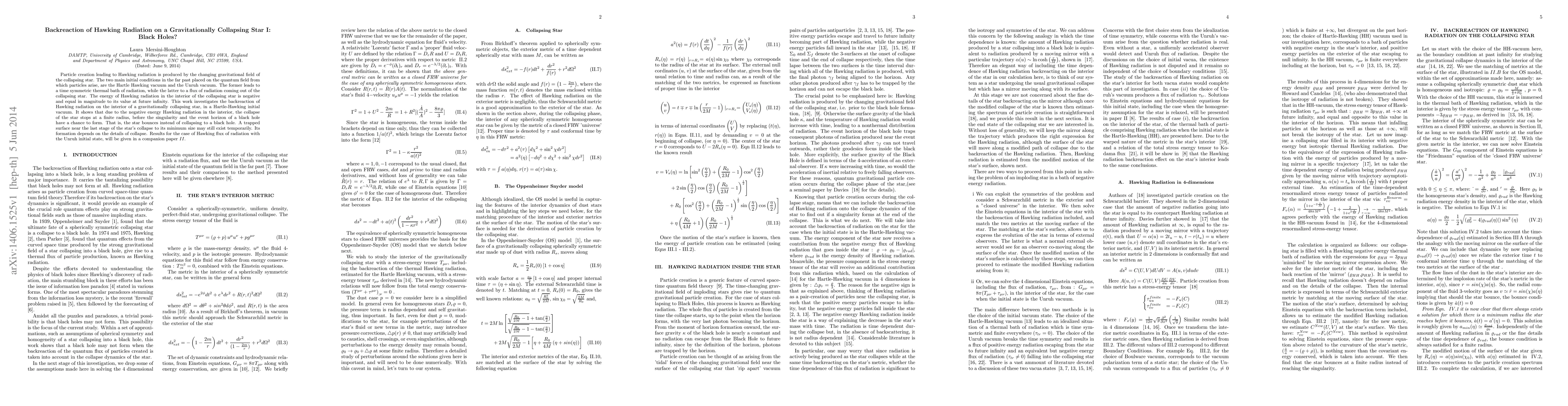 This paper explores the backreaction of Hawking radiation on a collapsing star, showing that negative energy radiation causes the star to halt collapse at a finite radius, preventing black hole formation and causing a bounce instead. A companion paper will address the case with the Unruh initial state.