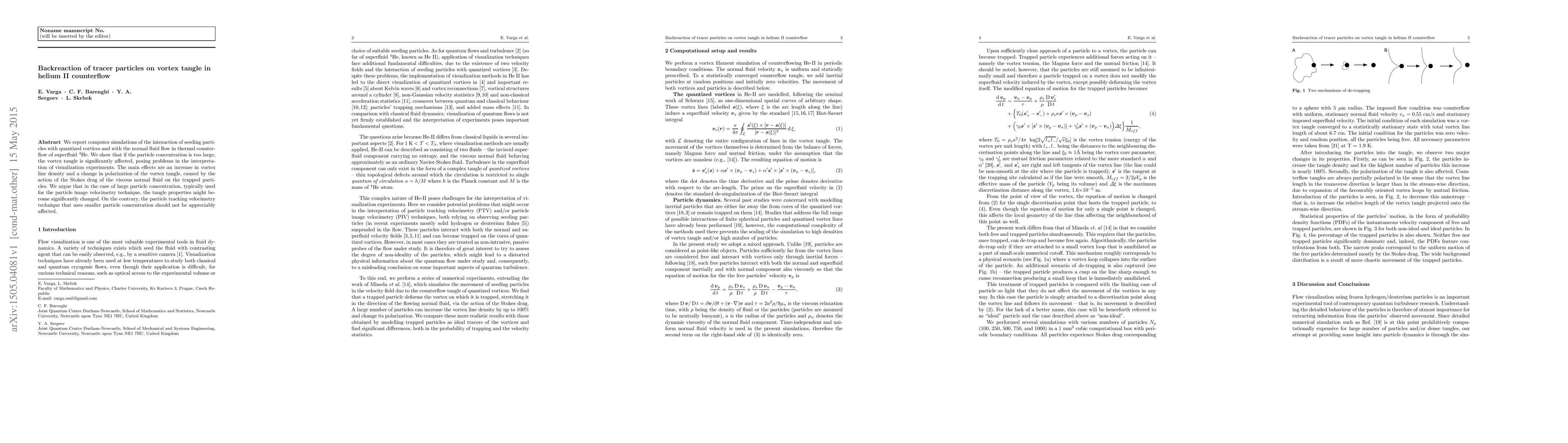 We report computer simulations of the interaction of seeding particles with quantized vortices and with the normal fluid flow in thermal counterflow of superfluid $^4$He. We show that if the particle concentration is too large, the vortex tangle is significantly affected, posing problems in the interpretation of visualization experiments. The main effects are an increase in vortex line density and a change in polarization of the vortex tangle, caused by the action of the Stokes drag of the viscous normal fluid on the trapped particles. We argue that in the case of large particle concentration, typically used for the particle image velocimetry technique, the tangle properties might become significantly changed. On the contrary, the particle tracking velocimetry technique that uses smaller particle concentration should not be appreciably affected.