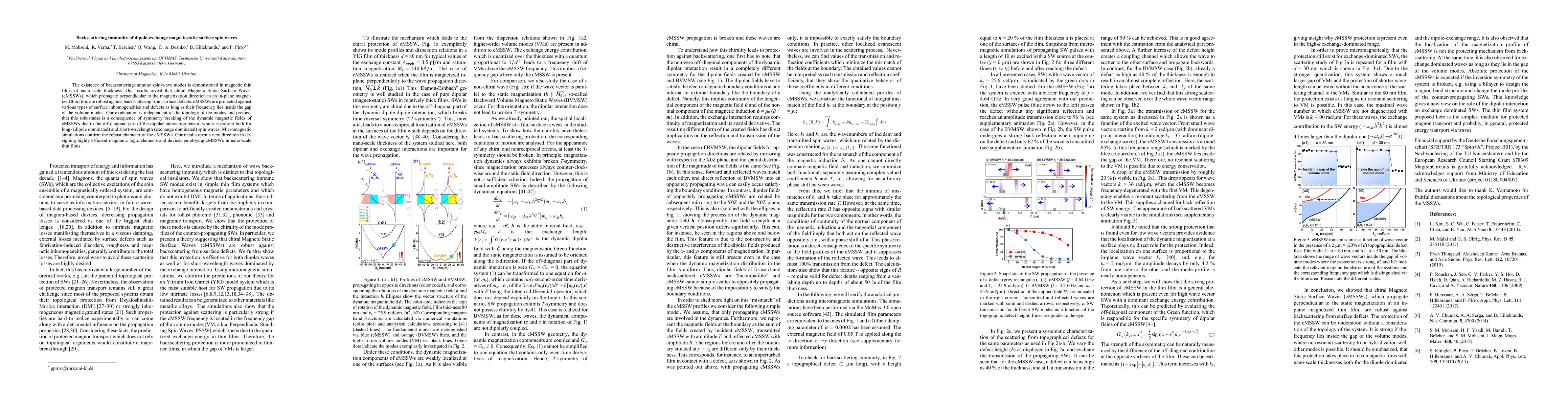 The existence of backscattering-immune spin-wave modes is demonstrated in magnetic thin films of nano-scale thickness. Our results reveal that chiral Magneto Static Surface Waves (cMSSWs), which propagate perpendicular to the magnetization direction in an in-plane magnetized thin film, are robust against backscattering from surface defects. cMSSWs are protected against various types of surface inhomogeneities and defects as long as their frequency lies inside the gap of the volume modes. Our explanation is independent of the topology of the modes and predicts that this robustness is a consequence of symmetry breaking of the dynamic magnetic fields of cMSSWs due to the off-diagonal part of the dipolar interaction tensor, which is present both for long- (dipole dominated) and short-wavelength (exchange dominated) spin waves. Micromagnetic simulations confirm the robust character of the cMSSWs. Our results open a new direction in designing highly efficient magnonic logic elements and devices employing cMSSWs in nano-scale thin films.