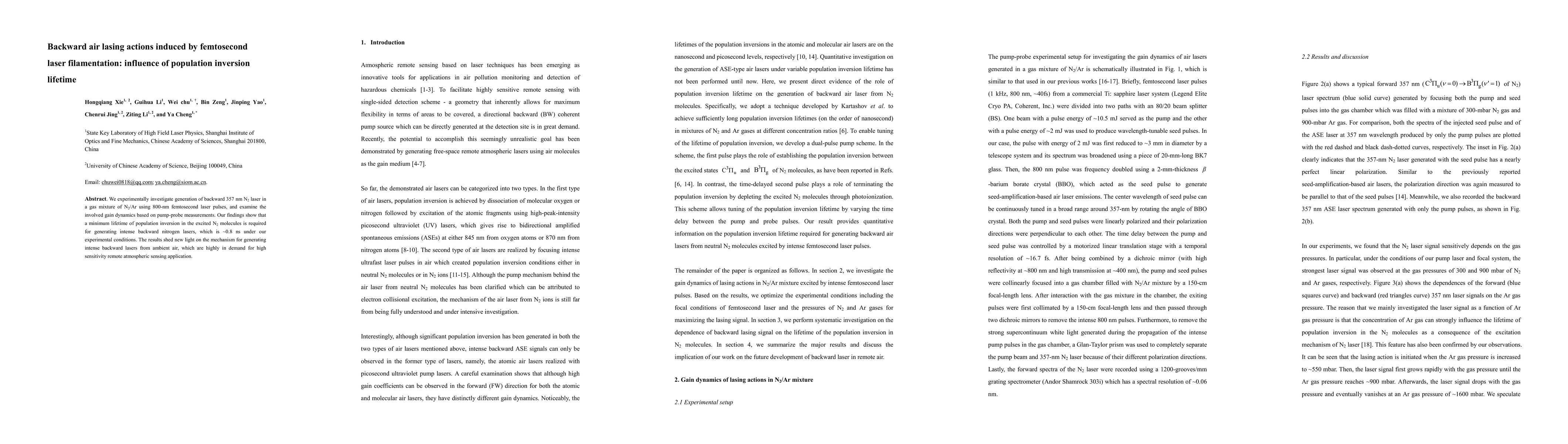 This study experimentally investigates the generation of intense backward nitrogen lasers at 357 nm in N2/Ar gas mixtures using 800-nm femtosecond laser pulses. It finds that a minimum population inversion lifetime of ~0.8 ns is necessary for the process, providing insights into the mechanism for high-sensitivity remote atmospheric sensing applications.