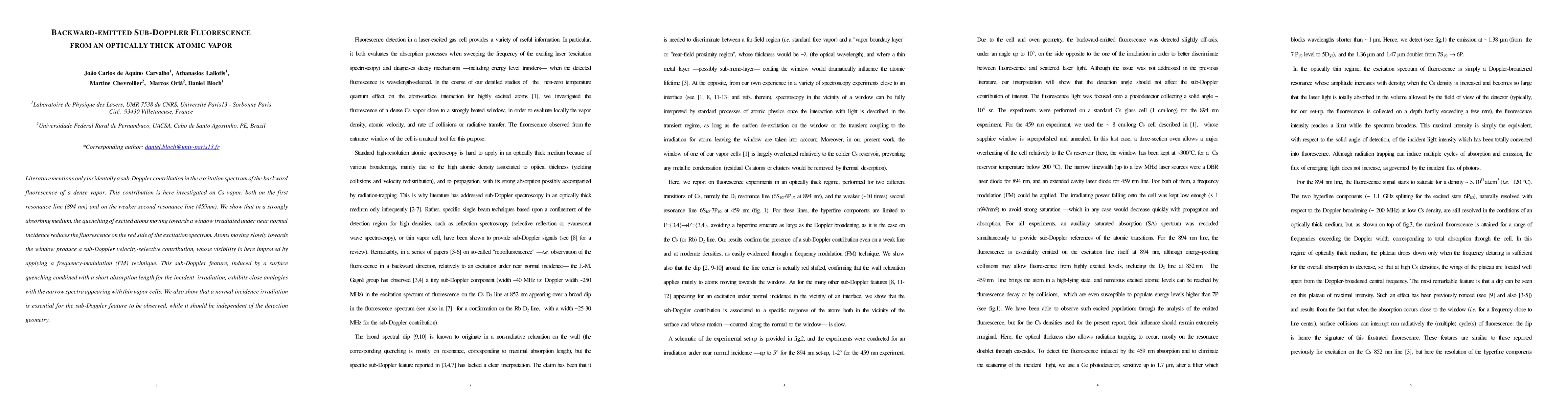 Literature mentions only incidentally a sub-Doppler contribution in the excitation spectrum of the backward fluorescence of a dense vapor. This contribution is here investigated on Cs vapor, both on the first resonance line (894 nm) and on the weaker second resonance line (459 nm). We show that in a strongly absorbing medium, the quenching of excited atoms moving towards a window irradiated under near normal incidence reduces the fluorescence on the red side of the excitation spectrum. Atoms moving slowly towards the window produce a sub- Doppler velocity-selective contribution, whose visibility is here improved by applying a frequency-modulation technique. This sub-Doppler feature, induced by a surface quenching combined with a short absorption length for the incident irradiation, exhibits close analogies with the narrow spectra appearing with thin vapor cells. We also show that a normal incidence irradiation is essential for the sub-Doppler feature to be observed, while it should be independent of the detection geometry
