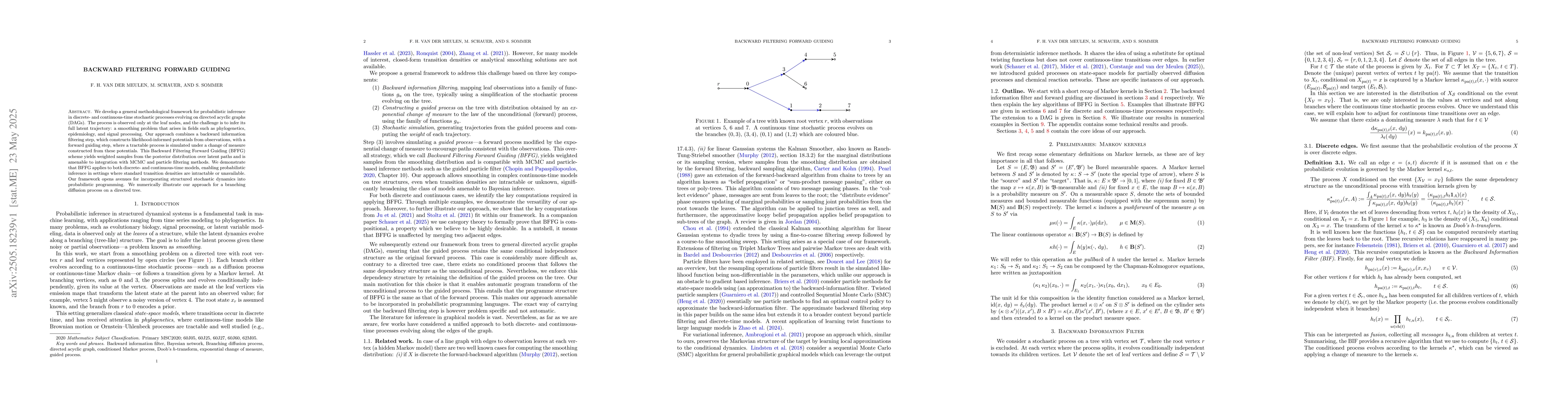 Researchers develop a new method called Backward Filtering Forward Guiding to infer the full trajectory of stochastic processes from observations at leaf nodes, enabling probabilistic inference in complex settings.