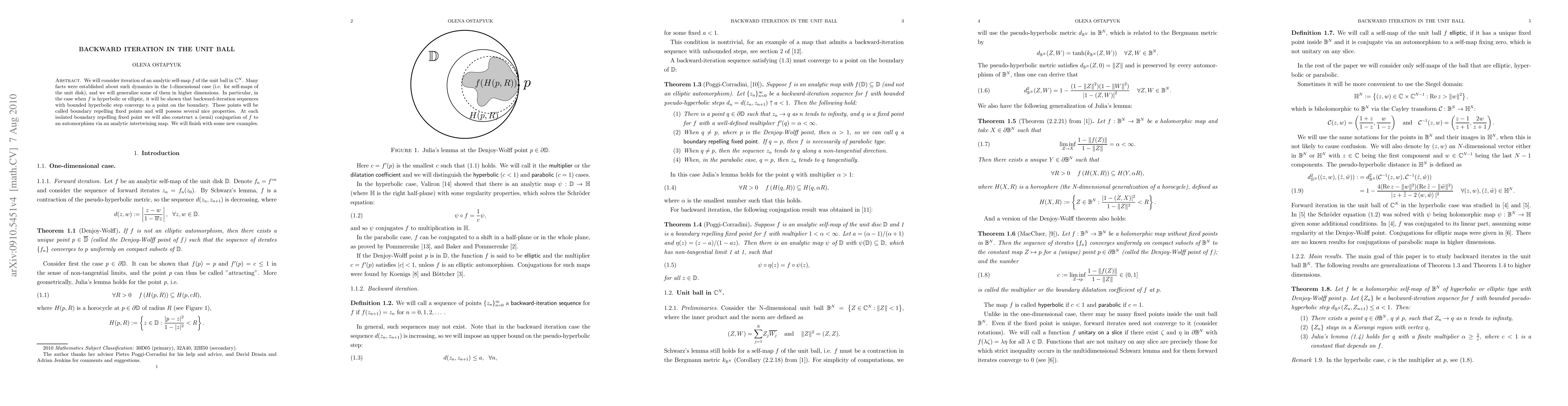 We will consider iteration of an analytic self-map $f$ of the unit ball in $\mathbb{C}^N$. Many facts were established about such dynamics in the 1-dimensional case (i.e. for self-maps of the unit disk), and we will generalize some of them in higher dimensions. In particular, in the case when $f$ is hyperbolic or elliptic, it will be shown that backward-iteration sequences with bounded hyperbolic step converge to a point on the boundary. These points will be called boundary repelling fixed points and will possess several nice properties. At each isolated boundary repelling fixed point we will also construct a (semi) conjugation of $f$ to an automorphism via an analytic intertwining map. We will finish with some new examples.