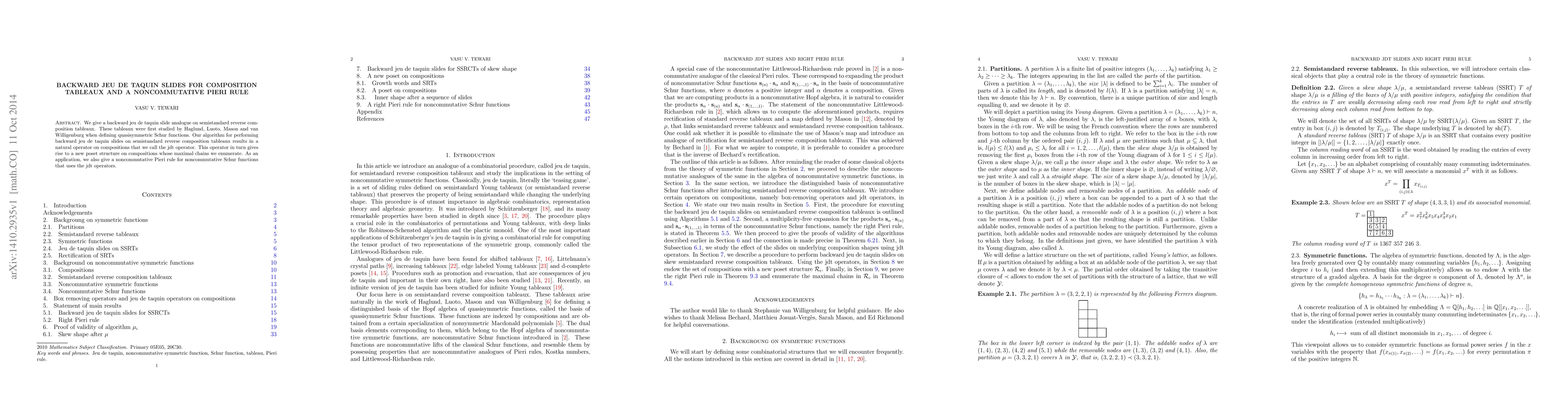 This paper develops a backward jeu de taquin slide algorithm for semistandard reverse composition tableaux, leading to a new poset structure on compositions and a noncommutative Pieri rule for noncommutative Schur functions. The introduced jdt operator enumerates maximal chains in this new poset structure.