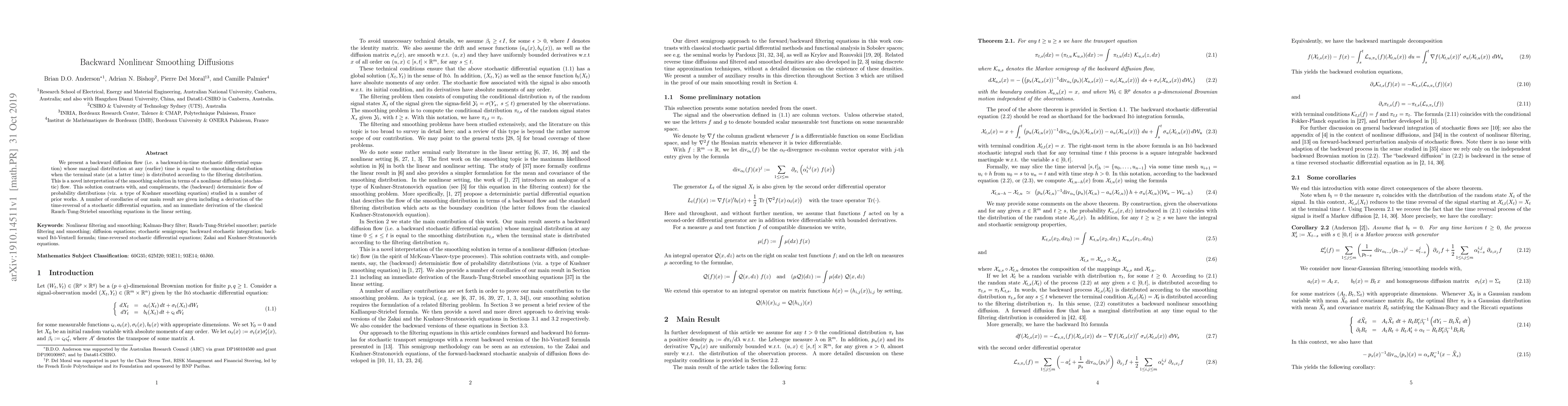 Researchers developed a backward nonlinear diffusion flow that models smoothing distributions over time, offering an alternative to traditional deterministic approaches. This discovery has implications for various fields, including filtering and estimation theory.