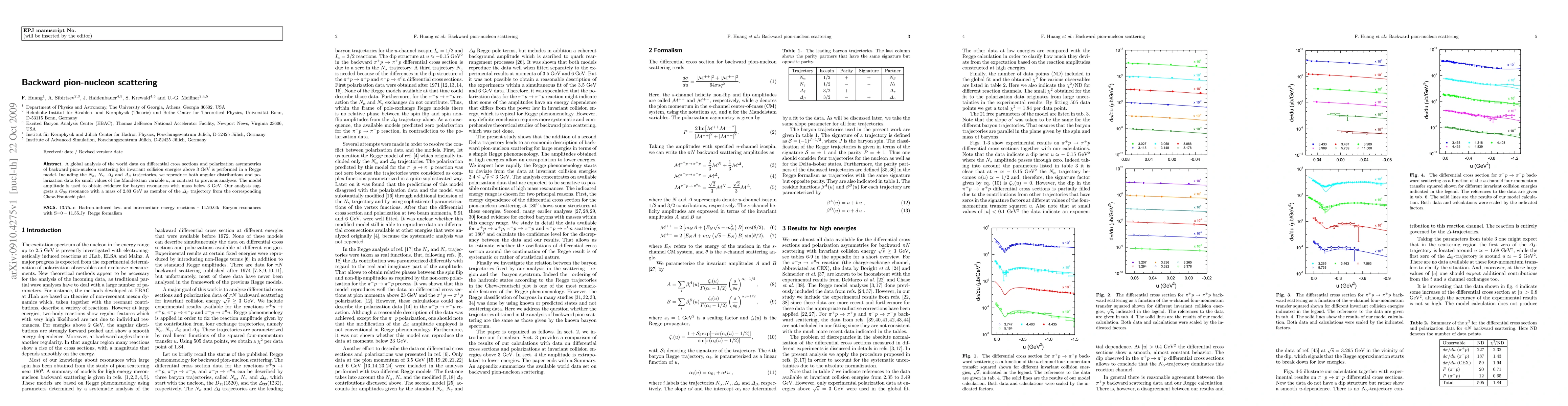 A global analysis of the world data on differential cross sections and polarization asymmetries of backward pion-nucleon scattering for invariant collision energies above 3 GeV is performed in a Regge model. Including the $N_\alpha$, $N_\gamma$, $\Delta_\delta$ and $\Delta_\beta$ trajectories, we reproduce both angular distributions and polarization data for small values of the Mandelstam variable $u$, in contrast to previous analyses. The model amplitude is used to obtain evidence for baryon resonances with mass below 3 GeV. Our analysis suggests a $G_{39}$ resonance with a mass of 2.83 GeV as member of the $\Delta_{\beta}$ trajectory from the corresponding Chew-Frautschi plot.