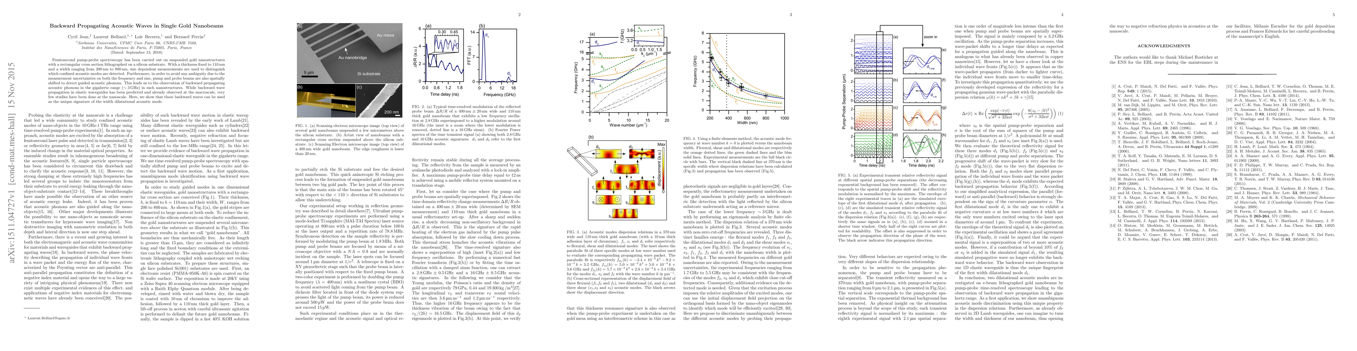 This study uses femtosecond pump-probe spectroscopy to observe backward propagating acoustic phonons in gold nanobeams, distinguishing size-dependent confined acoustic modes. The findings reveal gigahertz-range backward waves, providing a unique signature of the width dilatational acoustic mode in nanoscale waveguides.