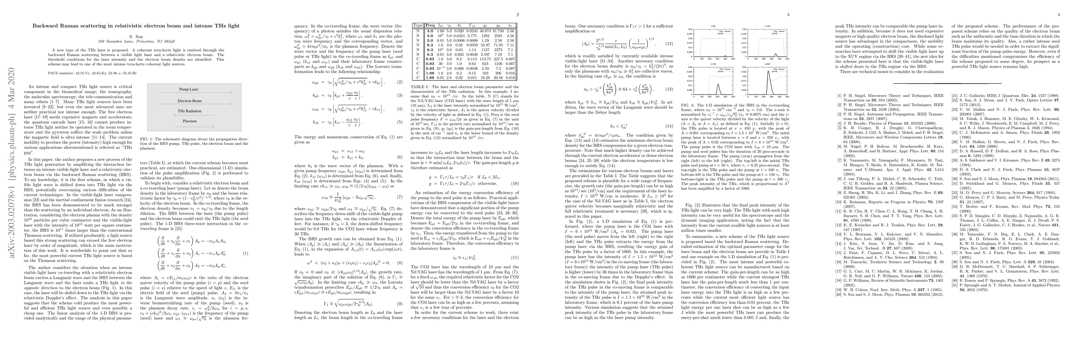 Summary: This paper proposes a novel method for generating intense coherent THz laser light through backward Raman scattering between a visible light laser and a relativistic electron beam, identifying the necessary threshold conditions for optimal performance. This scheme could become one of the most powerful sources of terahertz coherent light.