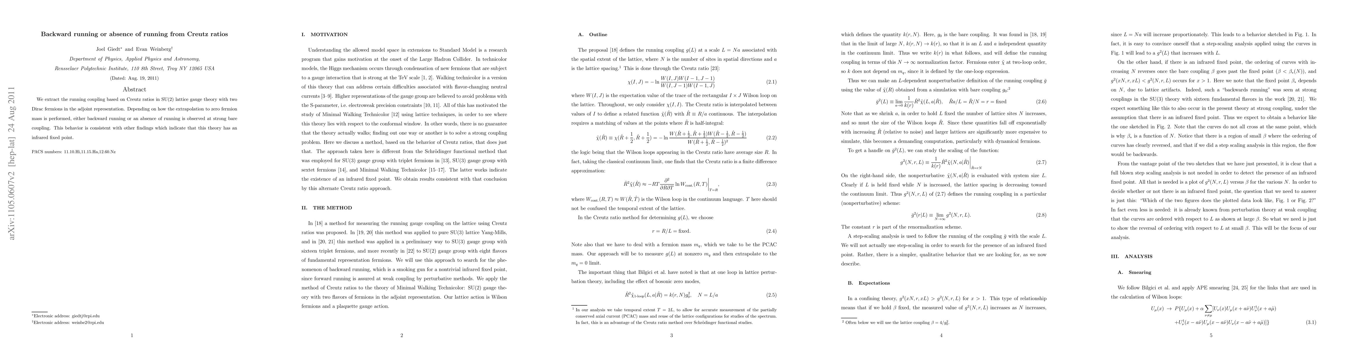 Summary: The study investigates the running coupling in SU(2) lattice gauge theory using Creutz ratios, revealing either backward running or no running at strong coupling, consistent with the presence of an infrared fixed point, depending on the mass extrapolation method.