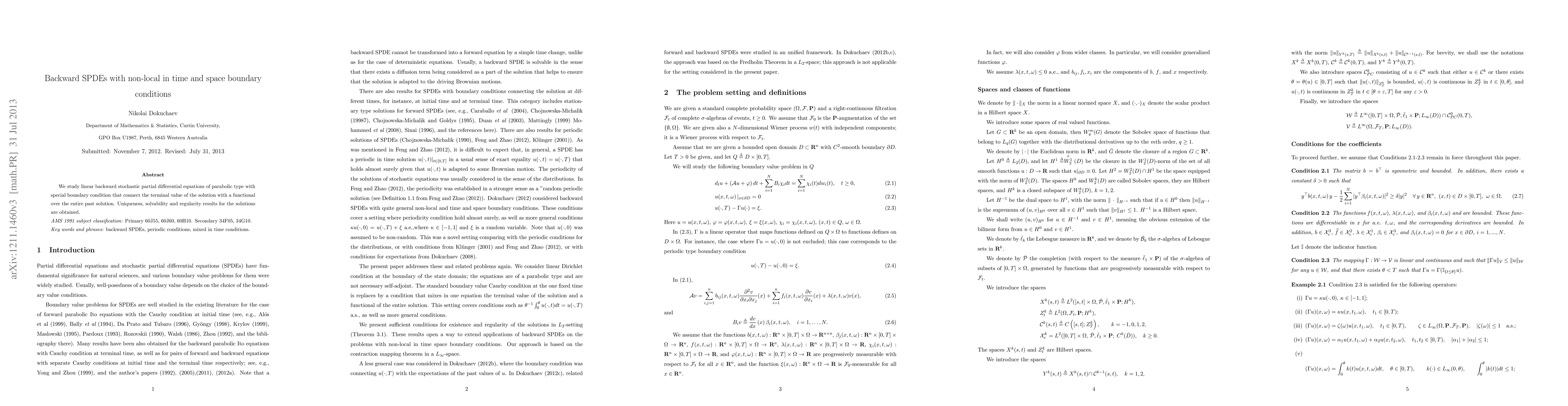This paper investigates linear backward stochastic partial differential equations (SPDEs) of parabolic type featuring non-local boundary conditions that link the solution's terminal value to a functional over its entire past. The authors establish uniqueness, solvability, and regularity of the solutions.