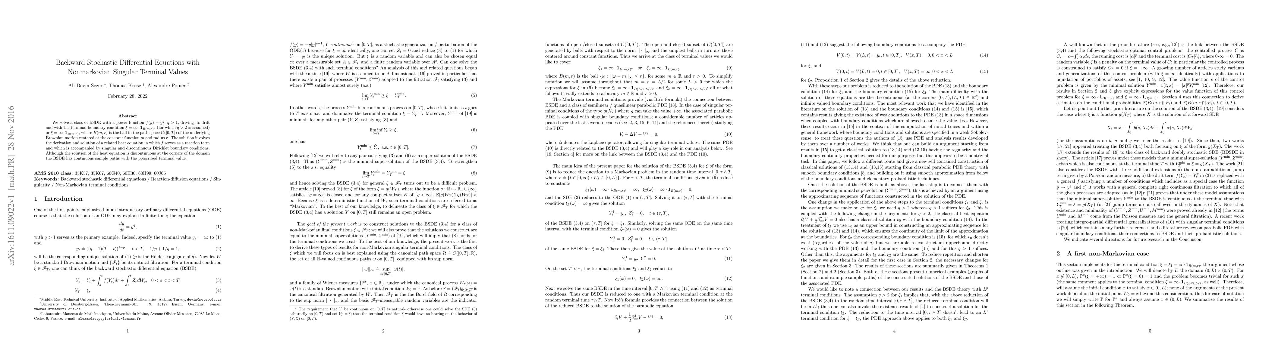 Researchers solve a class of backward stochastic differential equations with nonmarkovian terminal values using a related heat equation approach, enabling continuous sample paths despite singular boundary conditions.