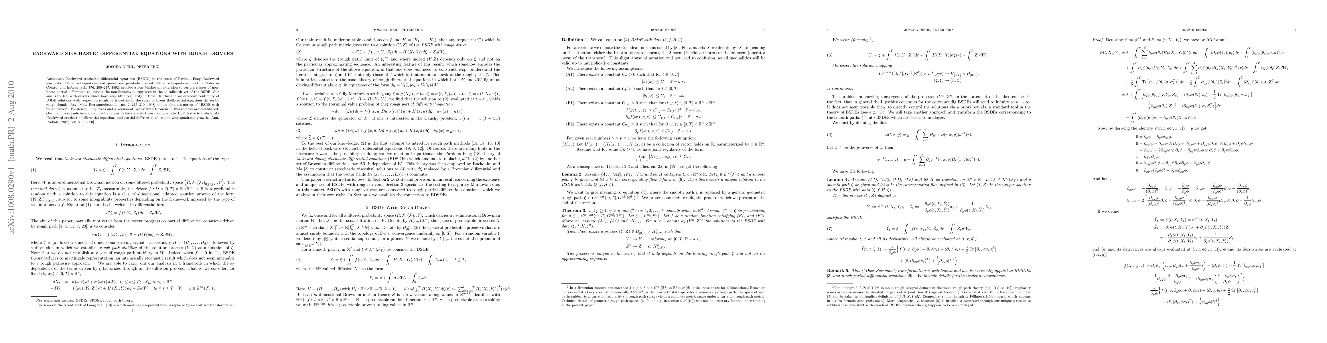 This paper investigates backward stochastic differential equations (BSDEs) driven by irregular time paths, referred to as "rough drivers." It establishes continuity of BSDE solutions using rough path metrics and proves existence, uniqueness, and a variant of Lyons' limit theorem, utilizing stability theory for quadratic BSDEs.