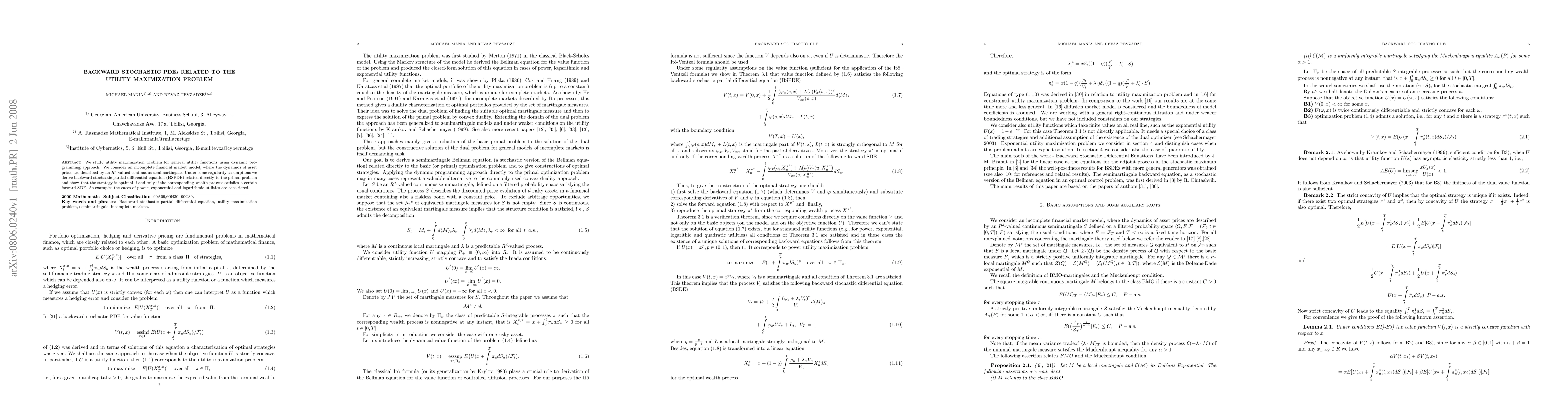 This paper explores utility maximization in incomplete financial markets using dynamic programming, deriving a backward stochastic partial differential equation (BSPDE) that characterizes optimal strategies. The BSPDE is shown to be directly related to the primal problem, with optimal strategies identified when the wealth process satisfies a corresponding forward stochastic differential equation (SDE).