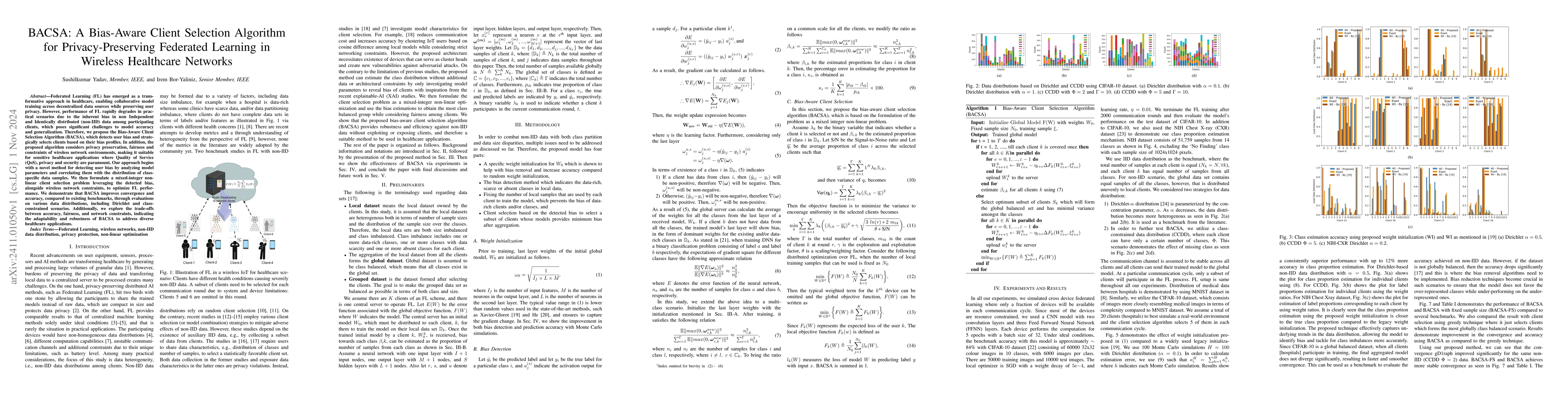 The BACSA algorithm aims to enhance Federated Learning (FL) in wireless healthcare networks by detecting user bias and selecting clients based on their bias profiles, while ensuring privacy, fairness, and considering network constraints. BACSA improves FL convergence and accuracy across diverse data distributions compared to existing methods.