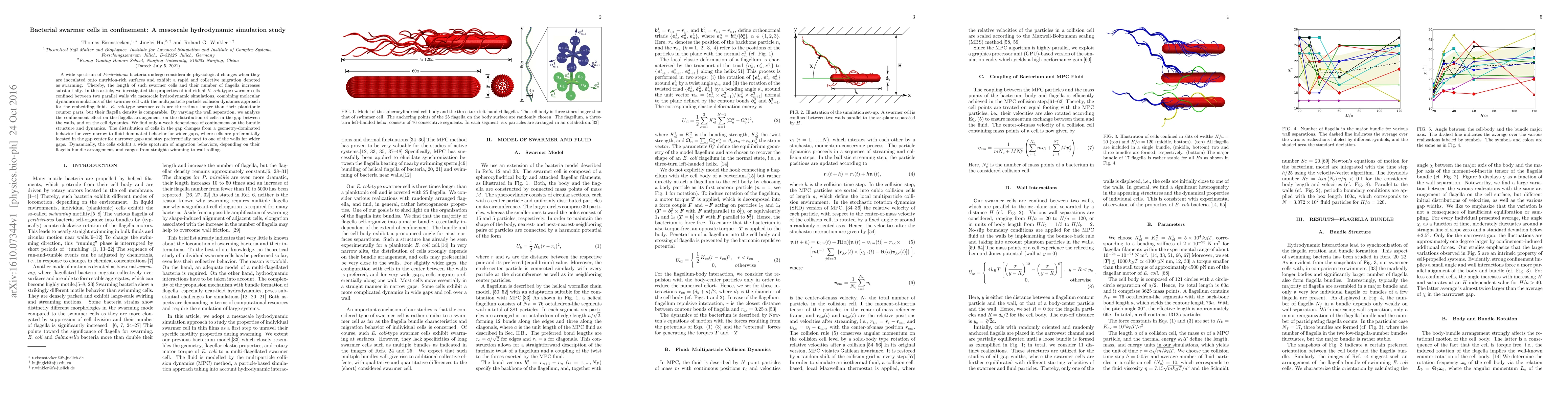 Researchers studied how bacteria change their shape and behavior when confined between two parallel walls, finding that flagella arrangement and cell distribution vary depending on gap width, while cells exhibit diverse migration behaviors.