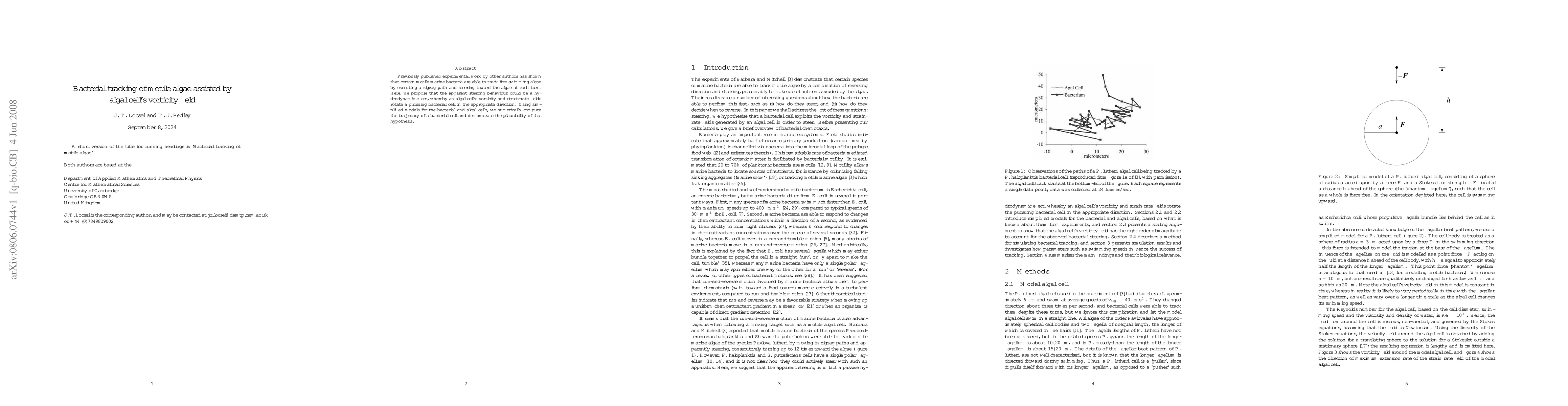 This paper proposes that motile marine bacteria track swimming algae by following the vorticity and strain-rate fields created by the algae's movement, rather than through an active zigzag steering behavior. Numerical simulations using simplified models support the hypothesis that bacterial tracking is a hydrodynamic effect.