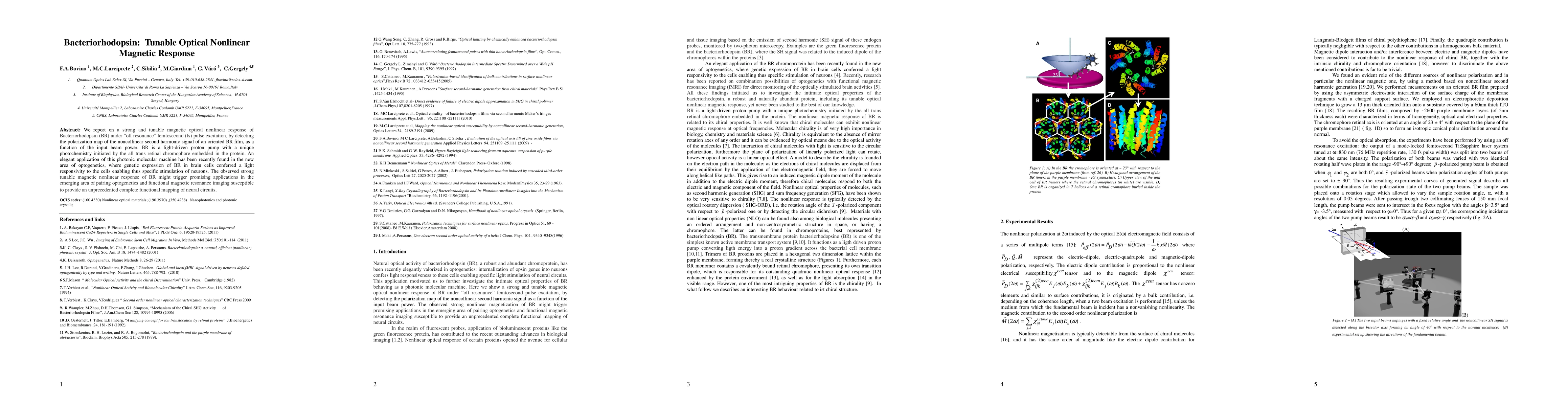 This paper investigates the strong and tunable magnetic optical nonlinear response of Bacteriorhodopsin under femtosecond pulse excitation, revealing potential applications in combining optogenetics with functional magnetic resonance imaging for detailed neural circuit mapping. The findings suggest a promising intersection between photonic molecular machines and advanced neuroimaging techniques.