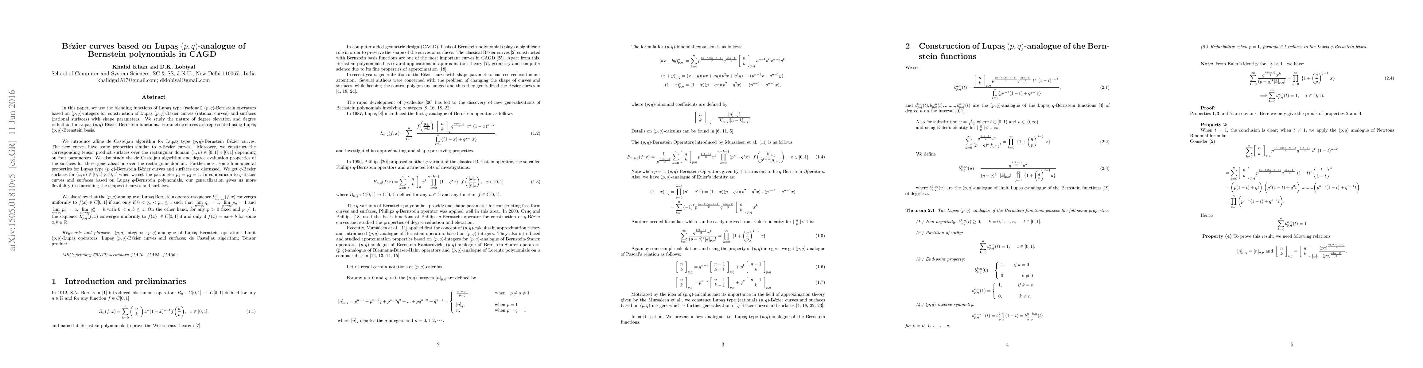 functions. Parametric curves are represented using Lupa\c{s} $(p,q)$-Bernstein