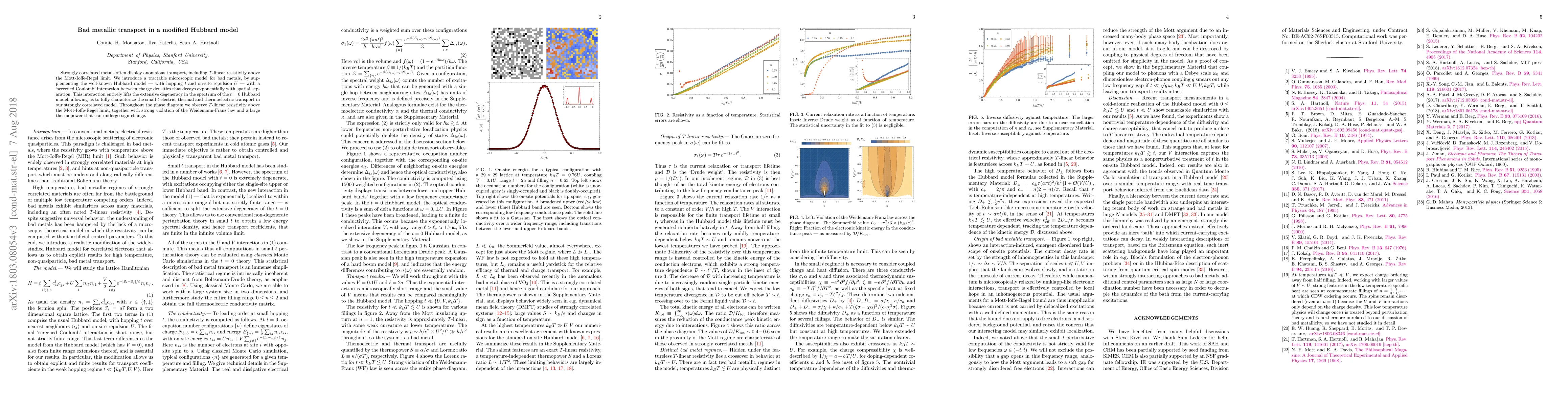 Strongly correlated metals often display anomalous transport, including $T$-linear resistivity above the Mott-Ioffe-Regel limit. We introduce a tractable microscopic model for such bad metals, by supplementing the well-known Hubbard model --- with hopping $t$ and on-site repulsion $U$ --- with a `screened Coulomb' interaction between charge densities that decays exponentially with spatial separation. This interaction entirely lifts the extensive degeneracy in the spectrum of the $t=0$ Hubbard model, allowing us to fully characterize the small $t$ electric, thermal and thermoelectric transport in our strongly correlated model. Throughout the phase diagram we observe $T$-linear resistivity above the Mott-Ioffe-Regel limit, together with strong violation of the Weidemann-Franz law and a large thermopower that can undergo sign change. At intermediate temperatures $t \ll k_B T \lesssim U$, the approximate $T$-linear resistivity arises from a cancellation between the nontrivial temperature dependence of both diffusivities and thermodynamic susceptibilities, as observed in recent transport experiments on cold atomic gases.