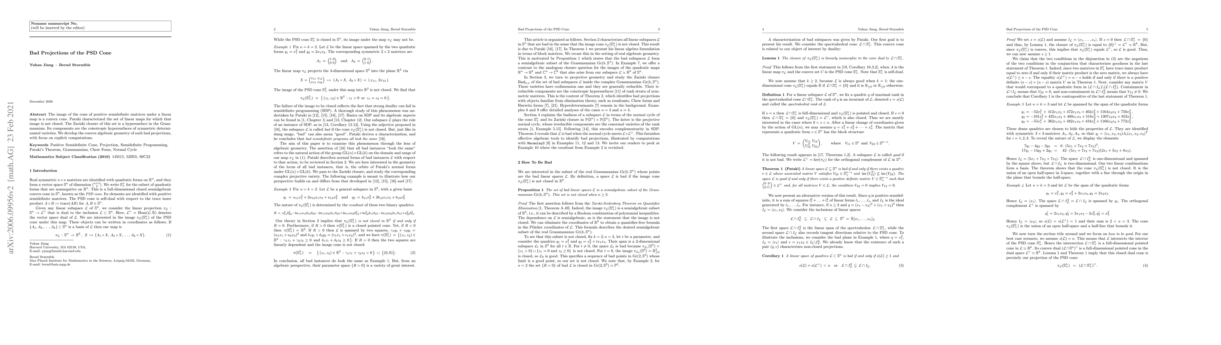 The image of the cone of positive semidefinite matrices under a linear map is a convex cone. Pataki characterized the set of linear maps for which that image is not closed. The Zariski closure of this set is a hypersurface in the Grassmannian. Its components are the coisotropic hypersurfaces of symmetric determinantal varieties. We develop the convex algebraic geometry of such bad projections, with focus on explicit computations.