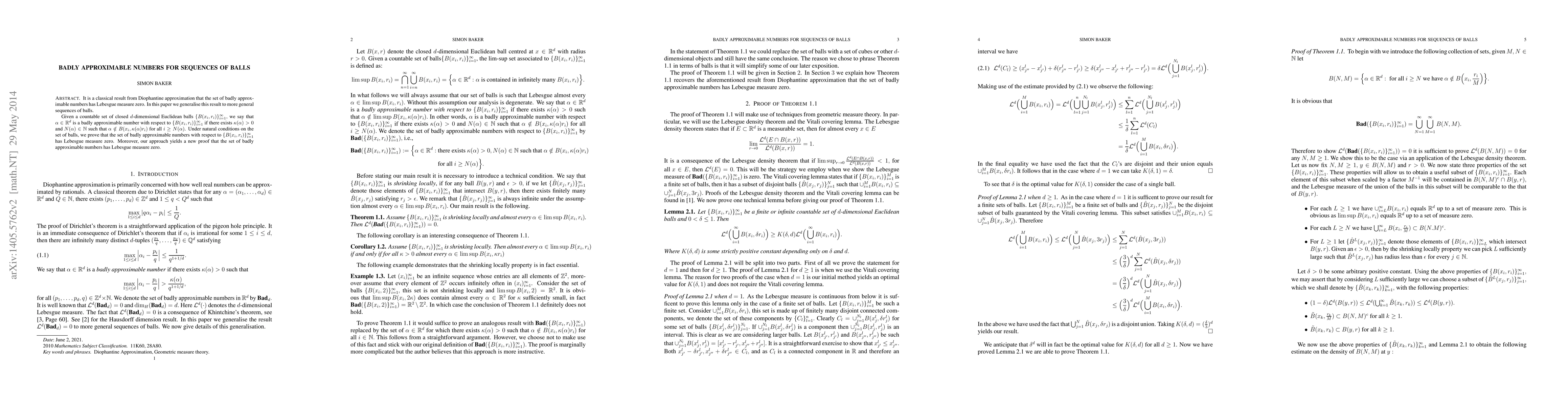 This paper extends the classical result on the Lebesgue measure of badly approximable numbers to sequences of $d$-dimensional Euclidean balls, proving that under natural conditions, the set of such numbers has Lebesgue measure zero. The approach also provides a novel proof for the original result in the standard setting.