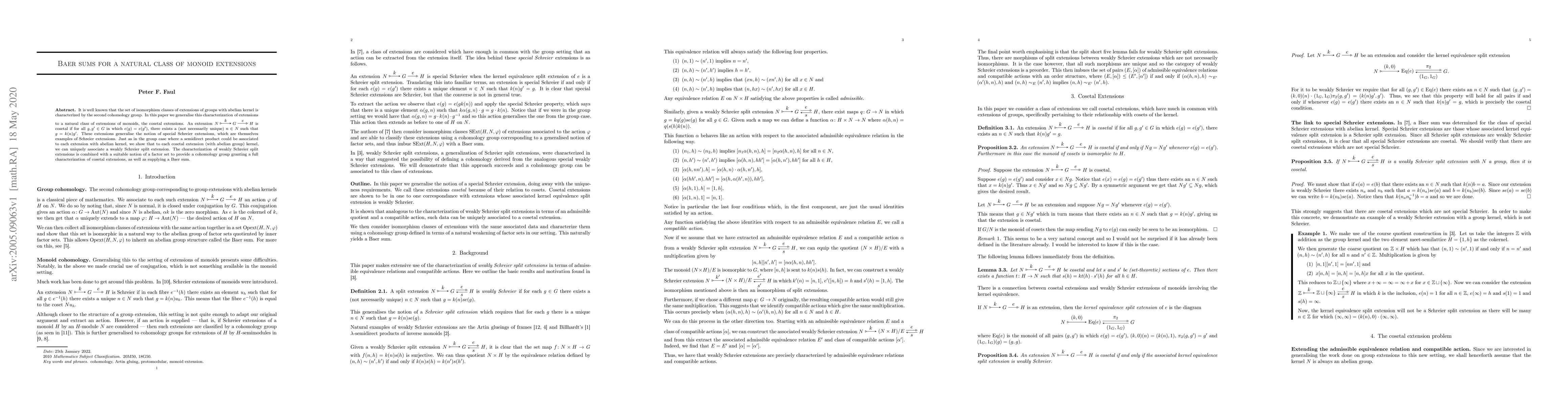 This paper generalizes the characterization of group extensions by second cohomology to a specific class of monoid extensions called cosetal extensions. It associates each cosetal extension with an abelian kernel to a unique weakly Schreier split extension and uses a factor set to define a cohomology group, thus fully characterizing cosetal extensions and providing a Baer sum.