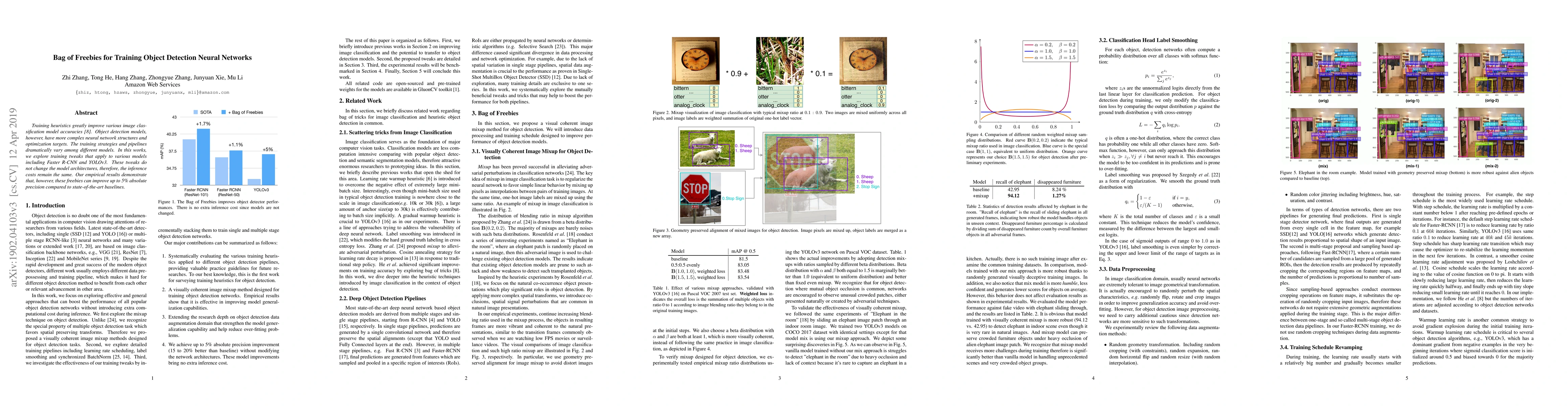 This paper investigates various training tweaks that enhance object detection models like Faster R-CNN and YOLOv3 without altering their architectures, achieving up to a 5% improvement in precision over state-of-the-art baselines. These "freebies" offer significant performance gains without increasing inference costs.
