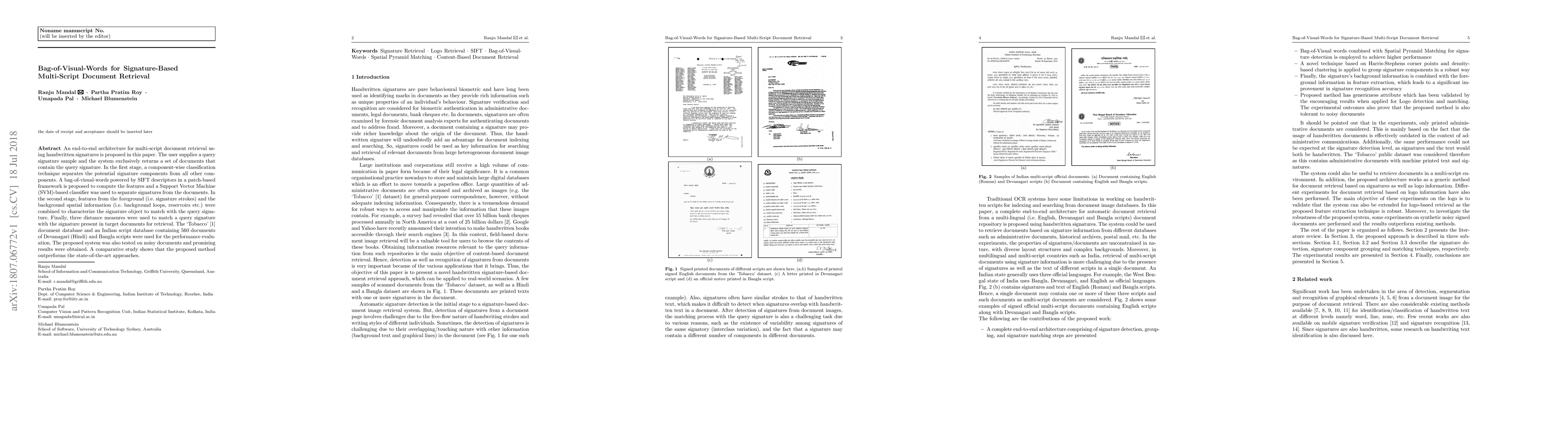 A novel system for multi-script document retrieval using handwritten signatures is proposed, achieving promising results on noise-tolerant performance, outperforming state-of-the-art approaches.