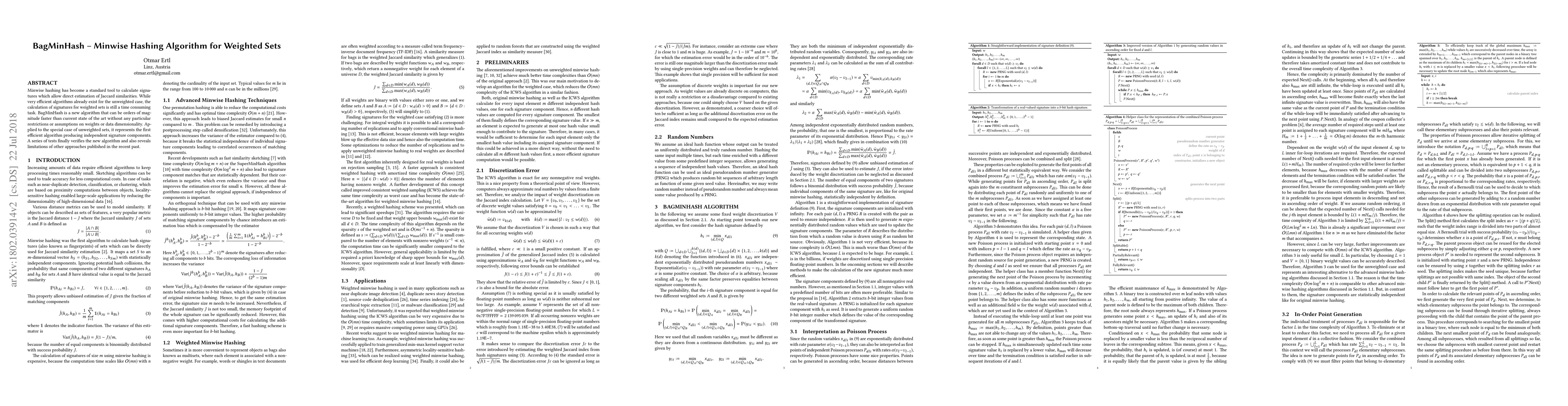 A new algorithm called BagMinHash offers a significant improvement in speed for calculating signatures of weighted sets, potentially orders of magnitude faster than existing methods without restrictions on data or weight assumptions.