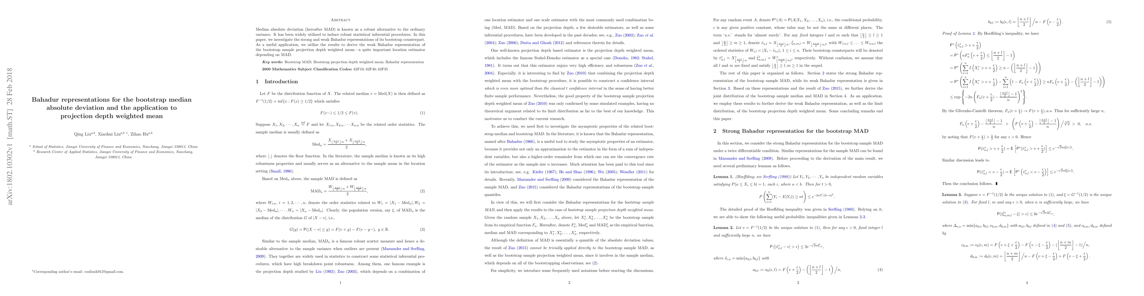 This paper explores the strong and weak Bahadur representations of the bootstrap median absolute deviation (MAD) and applies these findings to derive the weak Bahadur representation for the bootstrap sample projection depth weighted mean, an essential location estimator based on MAD.