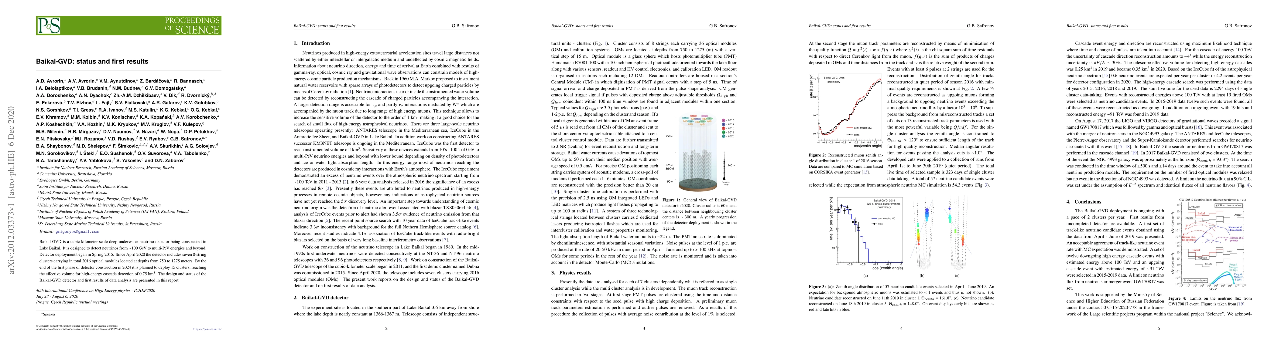 The Baikal-GVD detector, a cubic-kilometer scale underwater neutrino project in Lake Baikal, has deployed seven clusters with 2016 optical modules since 2020. Initial data analysis results are presented, with plans to expand to 15 clusters by 2024.