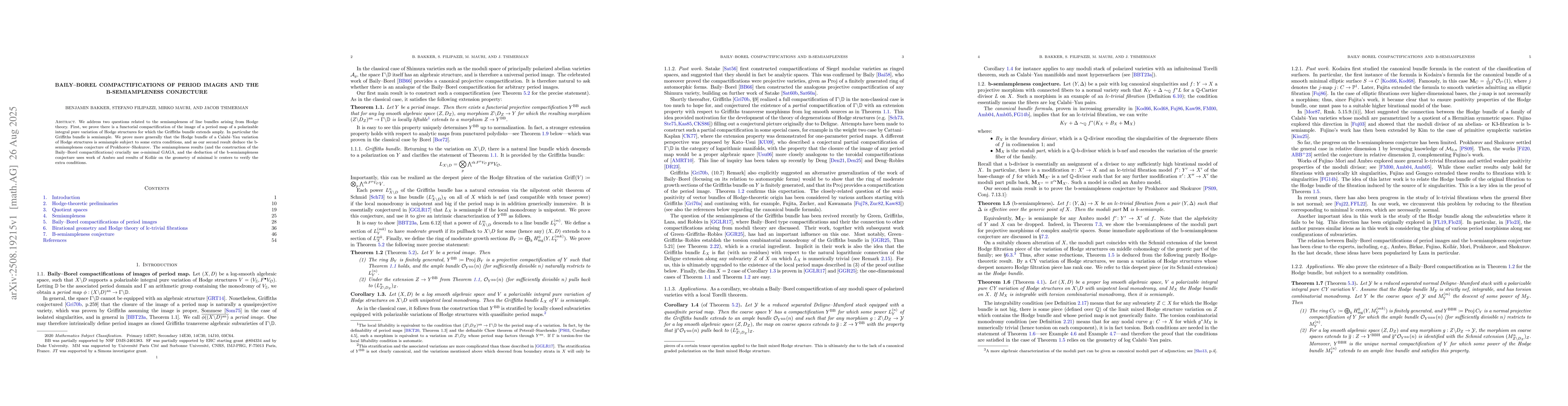 We address two questions related to the semiampleness of line bundles arising from Hodge theory. First, we prove there is a functorial compactification of the image of a period map of a polarizable integral pure variation of Hodge structures for which the Griffiths bundle extends amply. In particular the Griffiths bundle is semiample. We prove more generally that the Hodge bundle of a Calabi--Yau variation of Hodge structures is semiample subject to some extra conditions, and as our second result deduce the b-semiampleness conjecture of Prokhorov--Shokurov. The semiampleness results (and the construction of the Baily--Borel compactifications) crucially use o-minimal GAGA, and the deduction of the b-semiampleness conjecture uses work of Ambro and results of Koll\'ar on the geometry of minimal lc centers to verify the extra conditions.