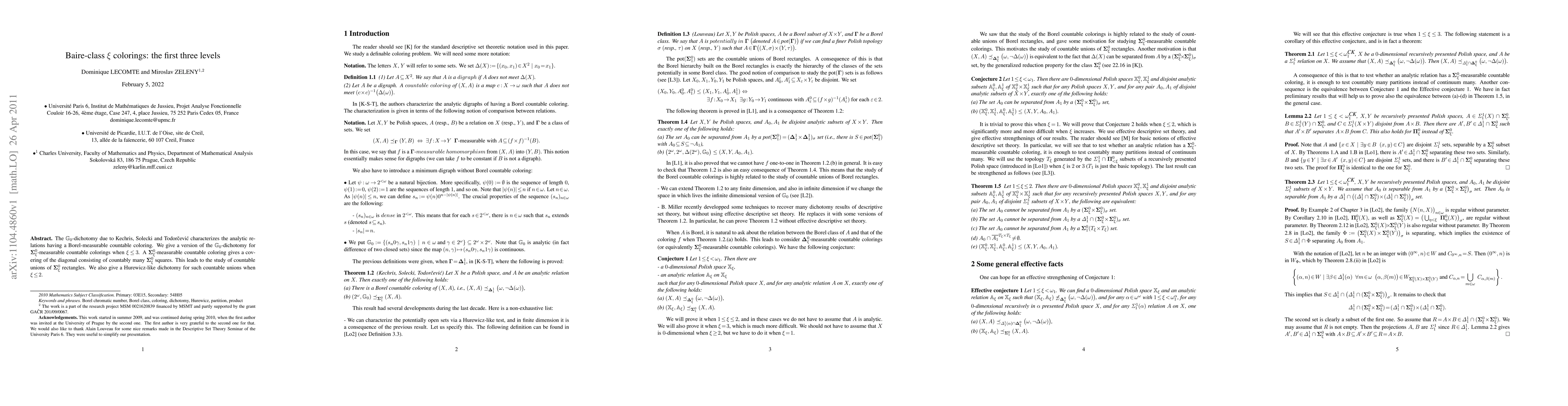 The $\mathbb{G}_0$-dichotomy due to Kechris, Solecki and Todor\vcevi\'c characterizes the analytic relations having a Borel-measurable countable coloring. We give a version of the $\mathbb{G}_0$-dichotomy for $\boraxi$-measurable countable colorings when $\xi\leq 3$. A $\boraxi$-measurable countable coloring gives a covering of the diagonal consisting of countably many $\boraxi$ squares. This leads to the study of countable unions of $\boraxi$ rectangles. We also give a Hurewicz-like dichotomy for such countable unions when $\xi\leq 2$.