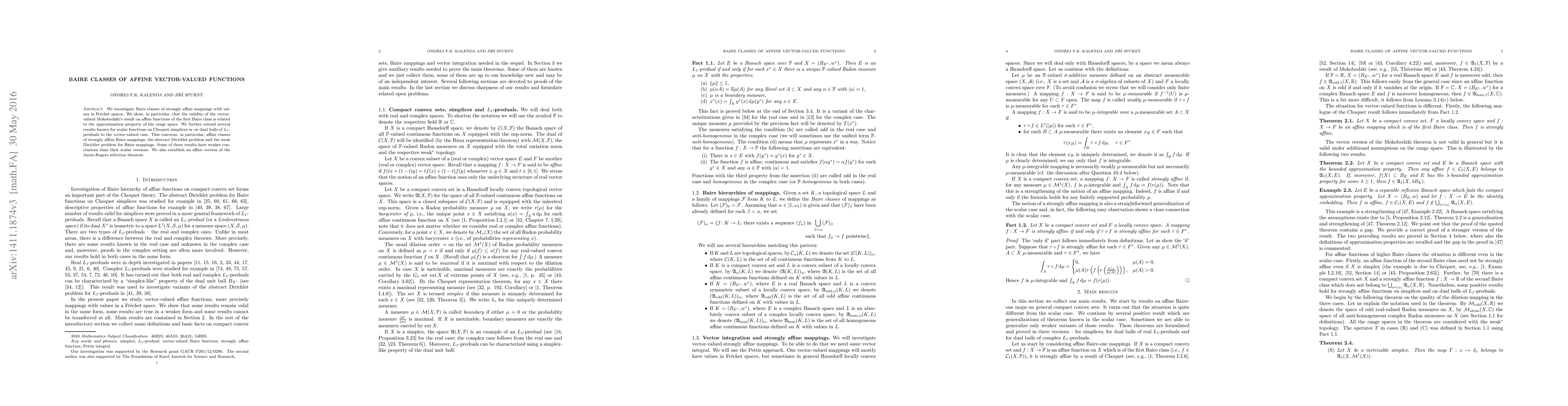 This paper explores the Baire classes of strongly affine mappings in Fréchet spaces, demonstrating that vector-valued extensions of Mokobodzki's result depend on the range space's approximation property. It extends several scalar results to the vector-valued case, including affine classes and Dirichlet problems, and establishes an affine version of the Jayne-Rogers selection theorem.