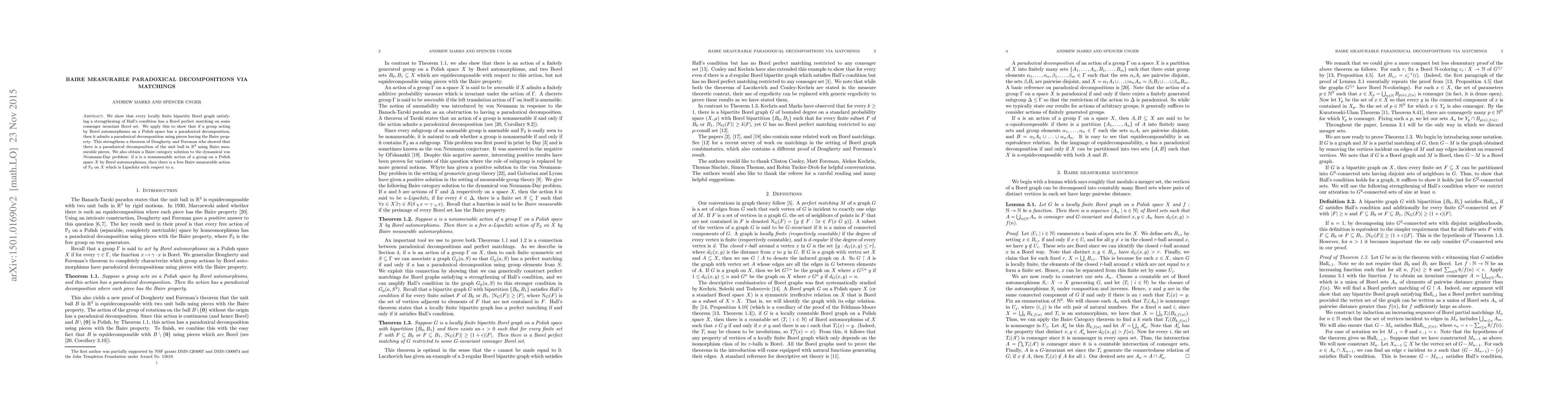 This paper demonstrates that locally finite bipartite Borel graphs meeting a strengthened Hall's condition possess Borel perfect matchings on comeager invariant Borel sets. It applies this result to show that groups with paradoxical decompositions can utilize pieces with the Baire property, enhancing previous results by Dougherty and Foreman.
