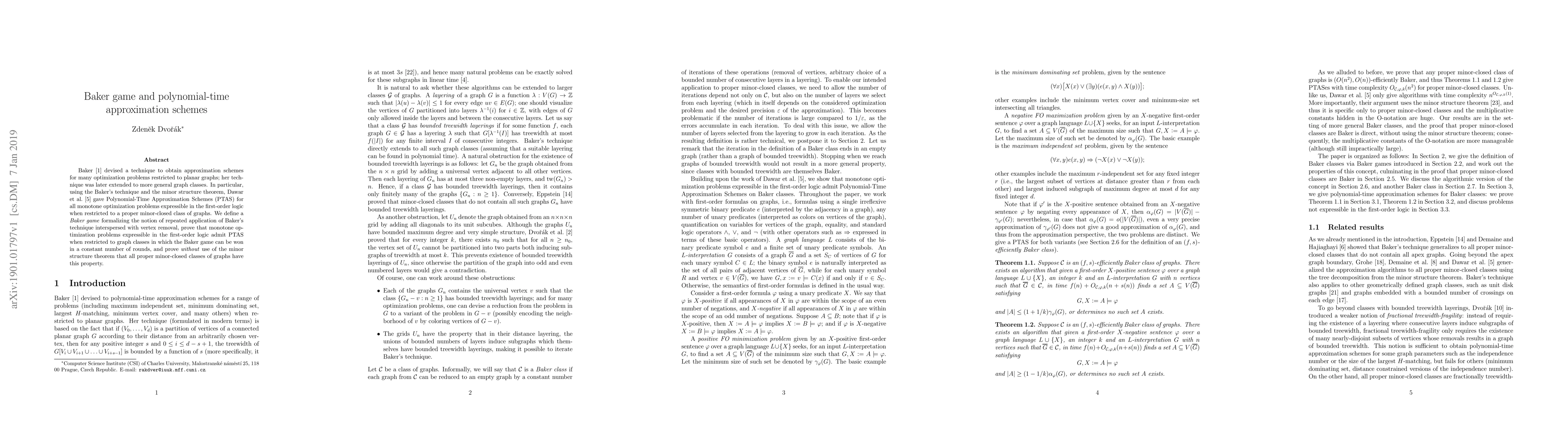 This paper introduces a Baker game to formalize repeated application of Baker's approximation technique interspersed with vertex removal, proving that monotone optimization problems in first-order logic admit PTAS when restricted to graph classes where the Baker game can be won in a constant number of rounds, and showing that all proper minor-closed classes of graphs inherently possess this property.