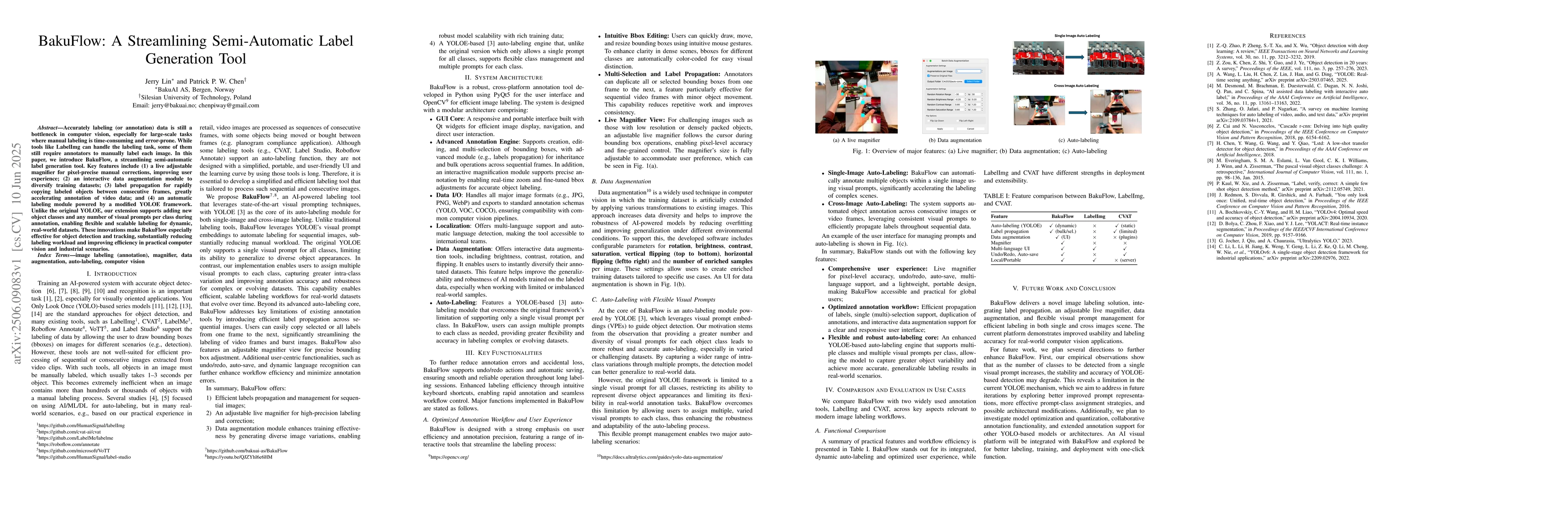 BakuFlow is a semi-automatic label generation tool that streamlines data labeling for computer vision tasks, reducing manual labor and improving efficiency with features like live adjustable magnifiers and automatic object class support.