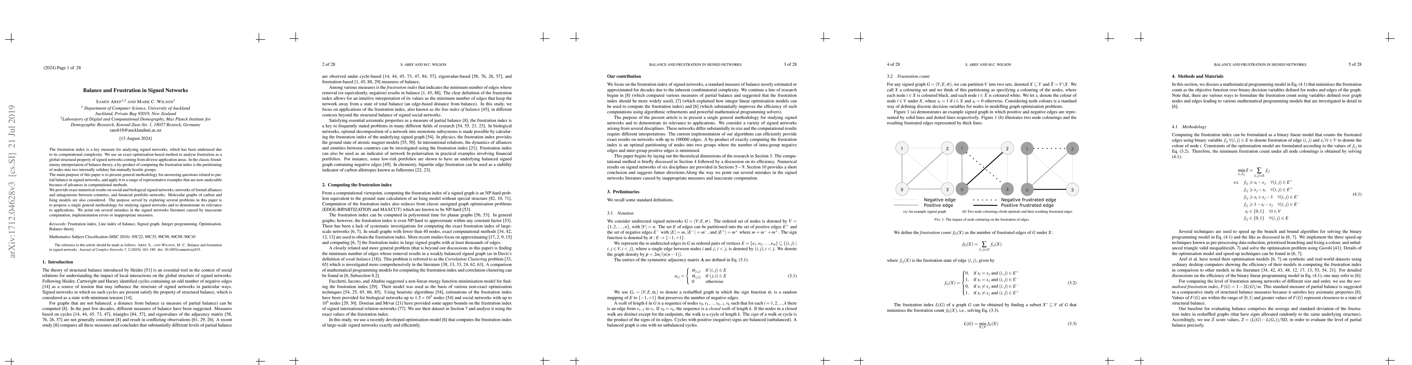The frustration index is a key measure for analysing signed networks, which has been underused due to its computational complexity. We use an exact optimisation-based method to analyse frustration as a global structural property of signed networks coming from diverse application areas. In the classic friend-enemy interpretation of balance theory, a by-product of computing the frustration index is the partitioning of nodes into two internally solidary but mutually hostile groups. The main purpose of this paper is to present general methodology for answering questions related to partial balance in signed networks, and apply it to a range of representative examples that are now analysable because of advances in computational methods. We provide exact numerical results on social and biological signed networks, networks of formal alliances and antagonisms between countries, and financial portfolio networks. Molecular graphs of carbon and Ising models are also considered. The purpose served by exploring several problems in this paper is to propose a single general methodology for studying signed networks and to demonstrate its relevance to applications. We point out several mistakes in the signed networks literature caused by inaccurate computation, implementation errors or inappropriate measures.
