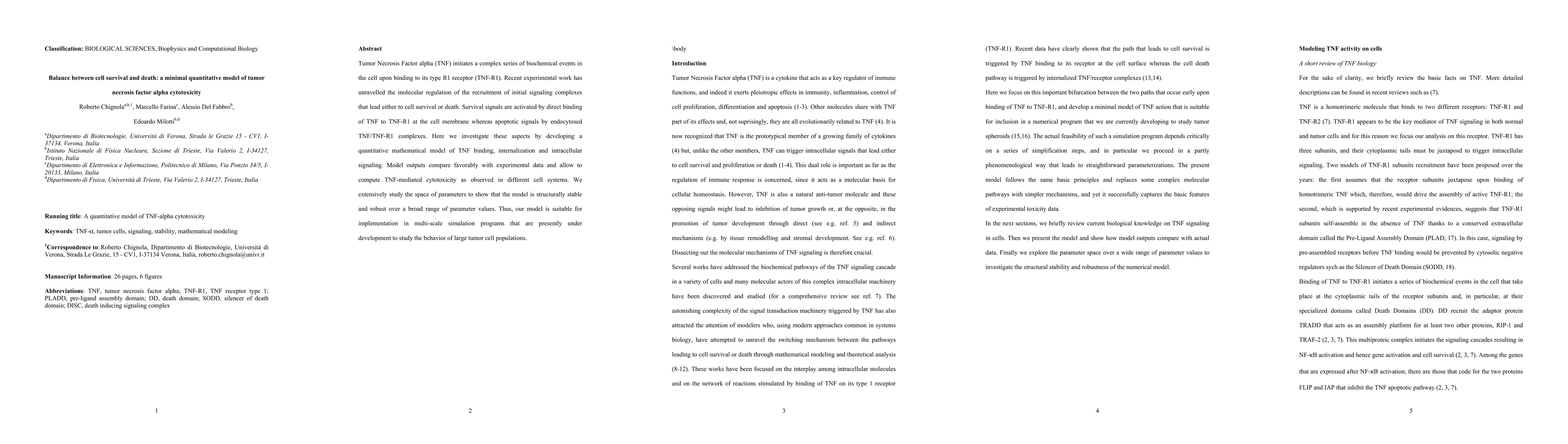 Researchers developed a mathematical model to understand how tumor Necrosis Factor alpha (TNF) affects cell survival and death, finding the model is structurally stable and robust over a broad range of parameters.