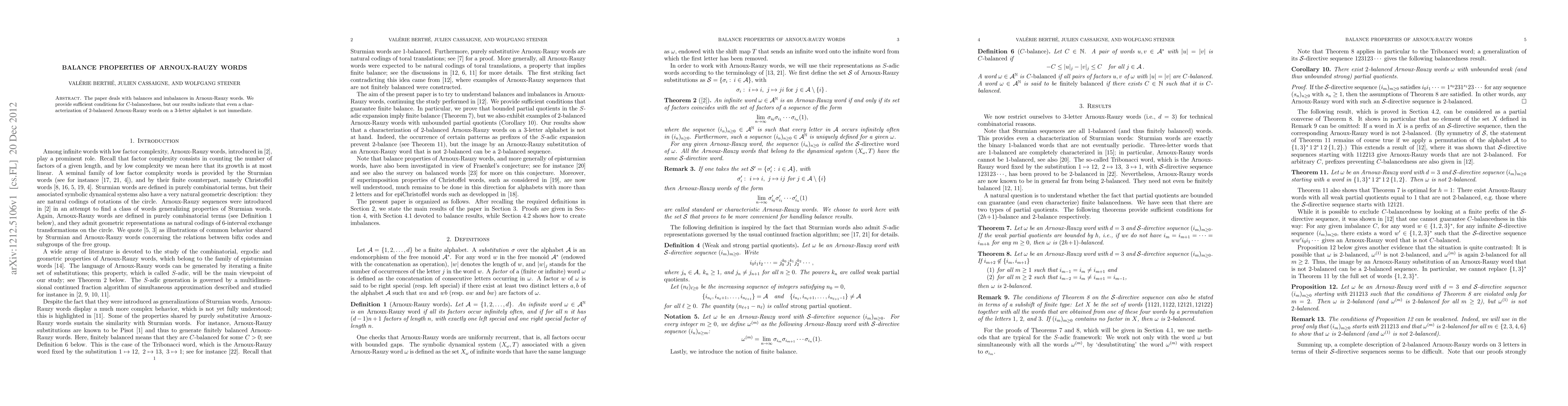 The paper explores balance properties in Arnoux-Rauzy words, providing sufficient conditions for $C$-balancedness. It suggests that characterizing 2-balancedness on a 3-letter alphabet remains complex.