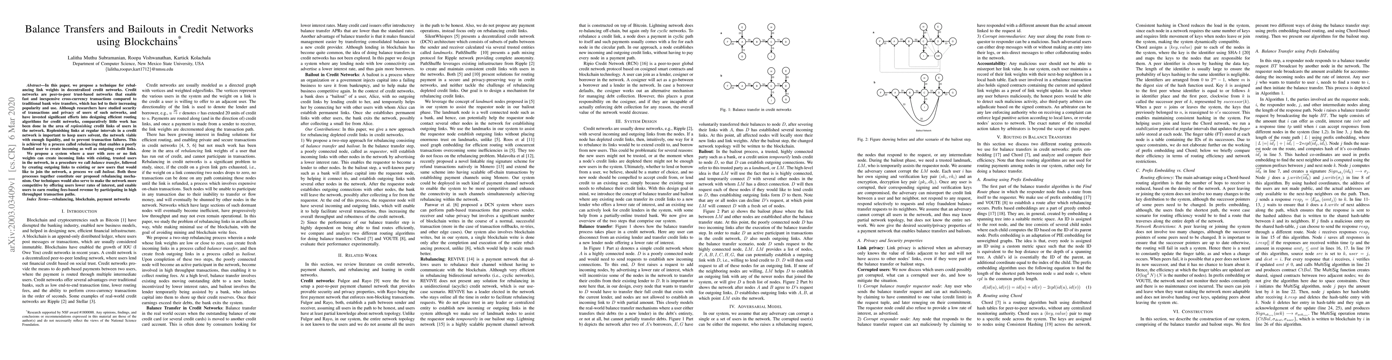 This paper proposes a rebalancing technique for decentralized credit networks using blockchains to replenish user links, enabling users to create incoming and outgoing links through balance transfers and bailouts, thus maintaining network liquidity and solvency. The method aims to enhance the network's competitiveness by offering lower interest rates and revenue opportunities through routing fees.
