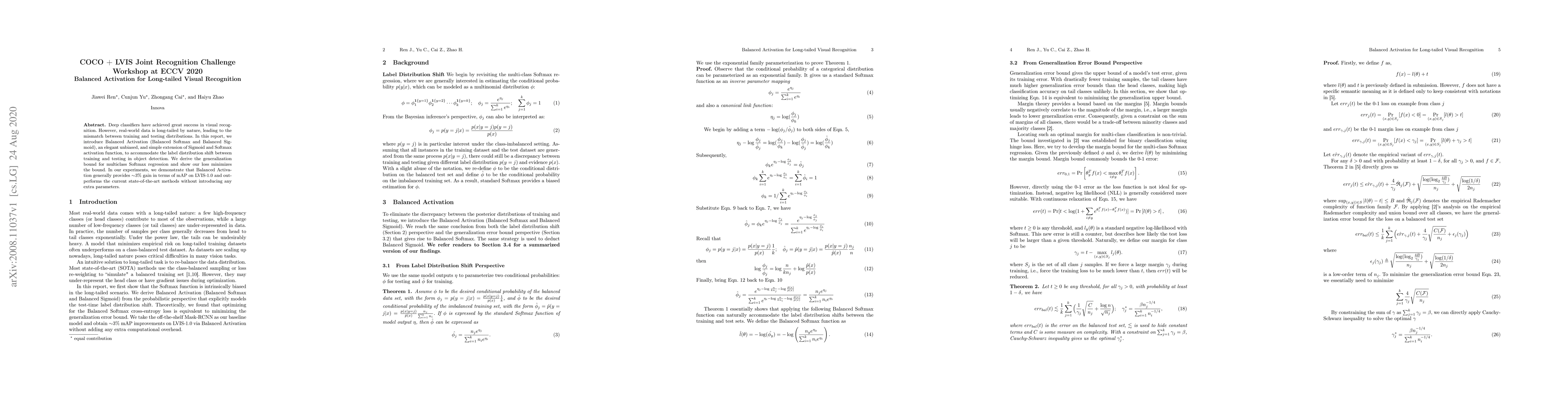 This paper proposes Balanced Activation, an extension of Sigmoid and Softmax functions, to address the long-tail distribution issue in visual recognition. The method shows a ~3% improvement in mean Average Precision (mAP) on LVIS-1.0, outperforming current state-of-the-art methods without adding extra parameters.