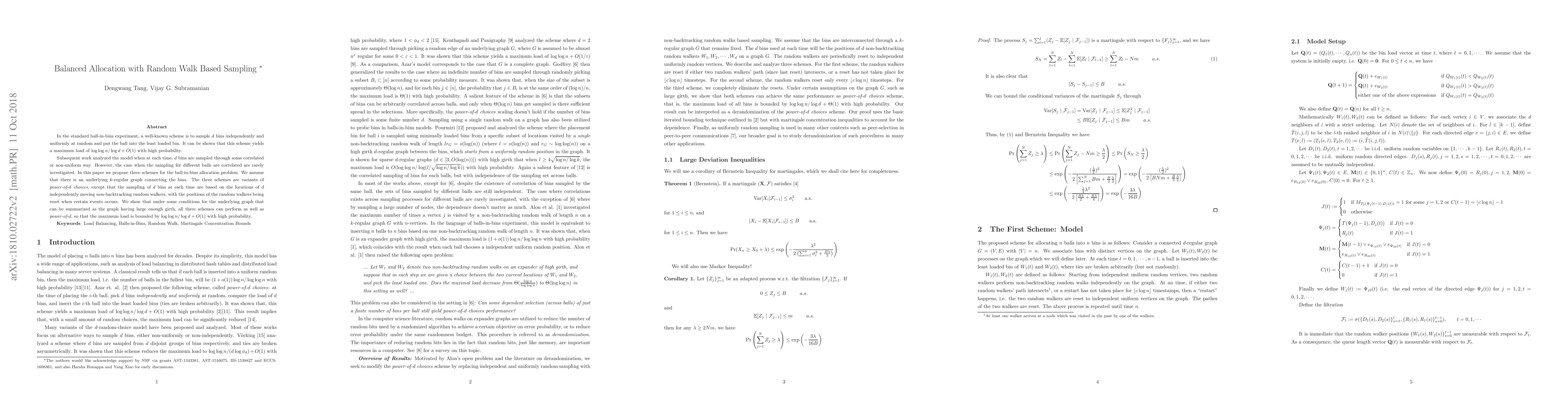 In the standard ball-in-bins experiment, a well-known scheme is to sample $d$ bins independently and uniformly at random and put the ball into the least loaded bin. It can be shown that this scheme yields a maximum load of $\log\log n/\log d+O(1)$ with high probability. Subsequent work analyzed the model when at each time, $d$ bins are sampled through some correlated or non-uniform way. However, the case when the sampling for different balls are correlated are rarely investigated. In this paper we propose three schemes for the ball-in-bins allocation problem. We assume that there is an underlying $k$-regular graph connecting the bins. The three schemes are variants of power-of-$d$ choices, except that the sampling of $d$ bins at each time are based on the locations of $d$ independently moving non-backtracking random walkers, with the positions of the random walkers being reset when certain events occurs. We show that under some conditions for the underlying graph that can be summarized as the graph having large enough girth, all three schemes can perform as well as power-of-$d$, so that the maximum load is bounded by $\log\log n/\log d+O(1)$ with high probability.