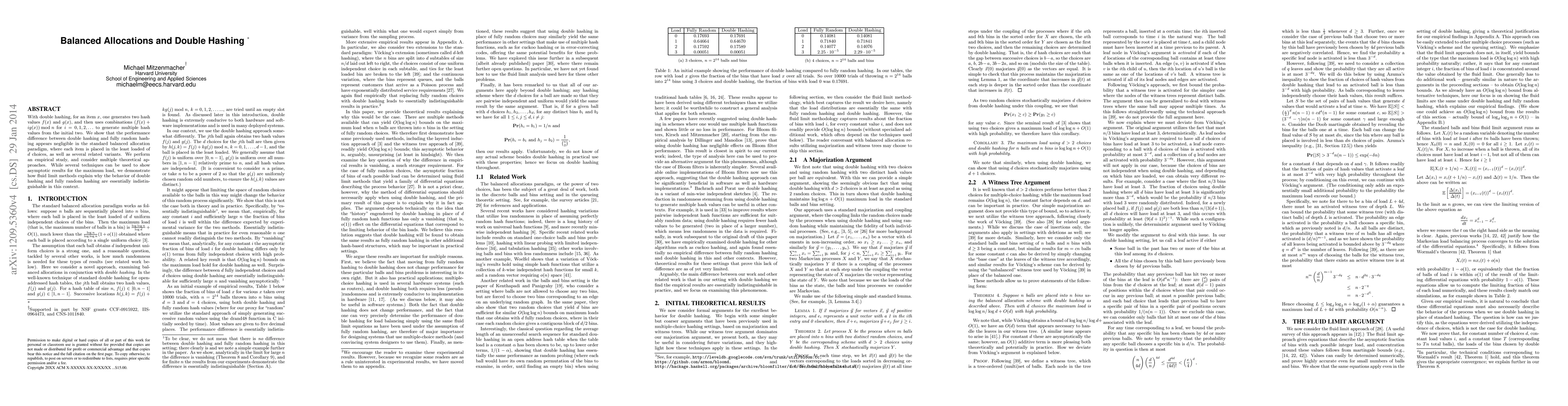A study found that double hashing has negligible performance differences to fully random hashing in a balanced allocation paradigm, and theoretical results explain its behavior.