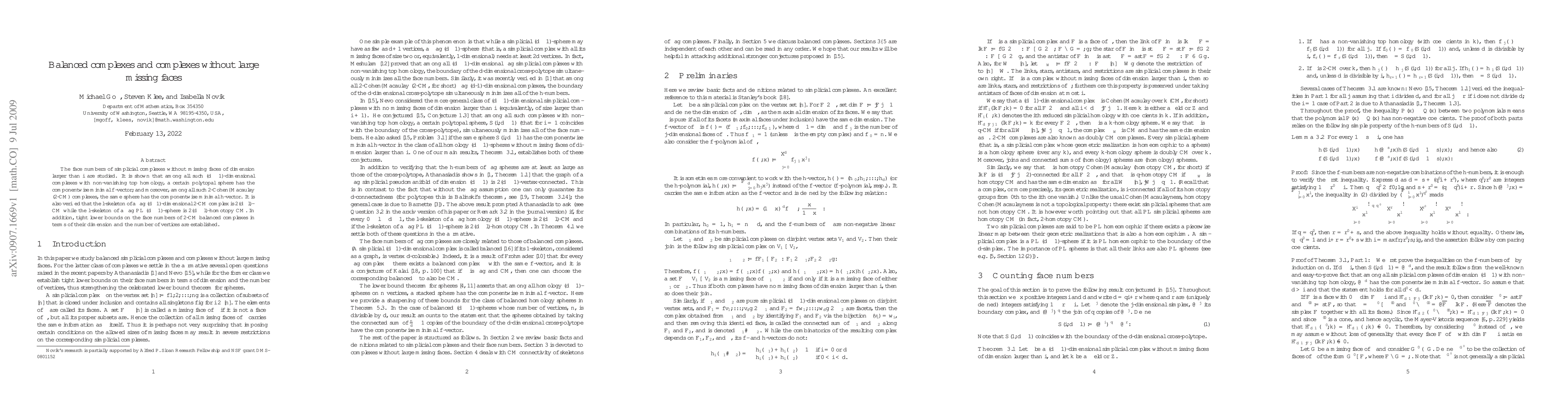 This paper studies simplicial complexes without large missing faces and investigates their face numbers. It concludes that a specific polytope has the minimal $f$-vector among complexes with non-vanishing top homology, and the same sphere has the minimal $h$-vector among 2-Cohen-Macaulay complexes. It also establishes lower bounds for the face numbers of 2-CM balanced complexes.