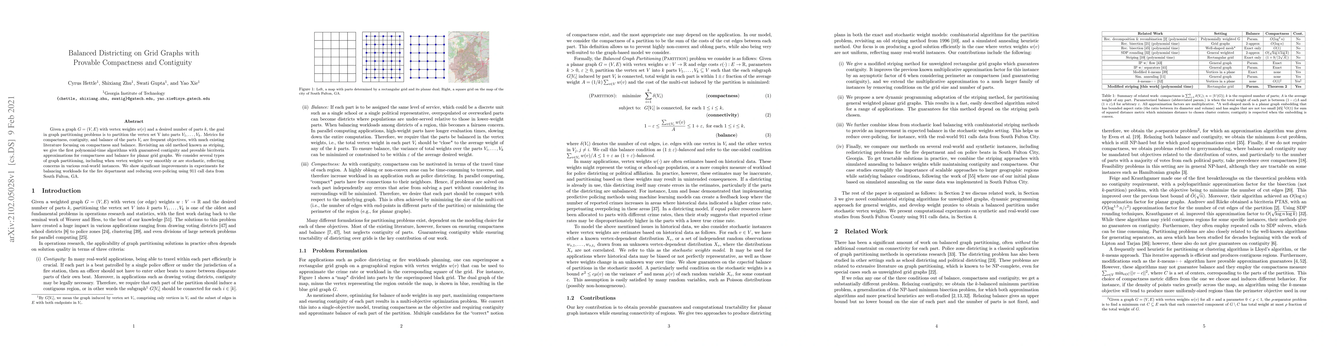 Given a graph $G = (V,E)$ with vertex weights $w(v)$ and a desired number of parts $k$, the goal in graph partitioning problems is to partition the vertex set V into parts $V_1,\ldots,V_k$. Metrics for compactness, contiguity, and balance of the parts $V_i$ are frequent objectives, with much existing literature focusing on compactness and balance. Revisiting an old method known as striping, we give the first polynomial-time algorithms with guaranteed contiguity and provable bicriteria approximations for compactness and balance for planar grid graphs. We consider several types of graph partitioning, including when vertex weights vary smoothly or are stochastic, reflecting concerns in various real-world instances. We show significant improvements in experiments for balancing workloads for the fire department and reducing over-policing using 911 call data from South Fulton, GA.