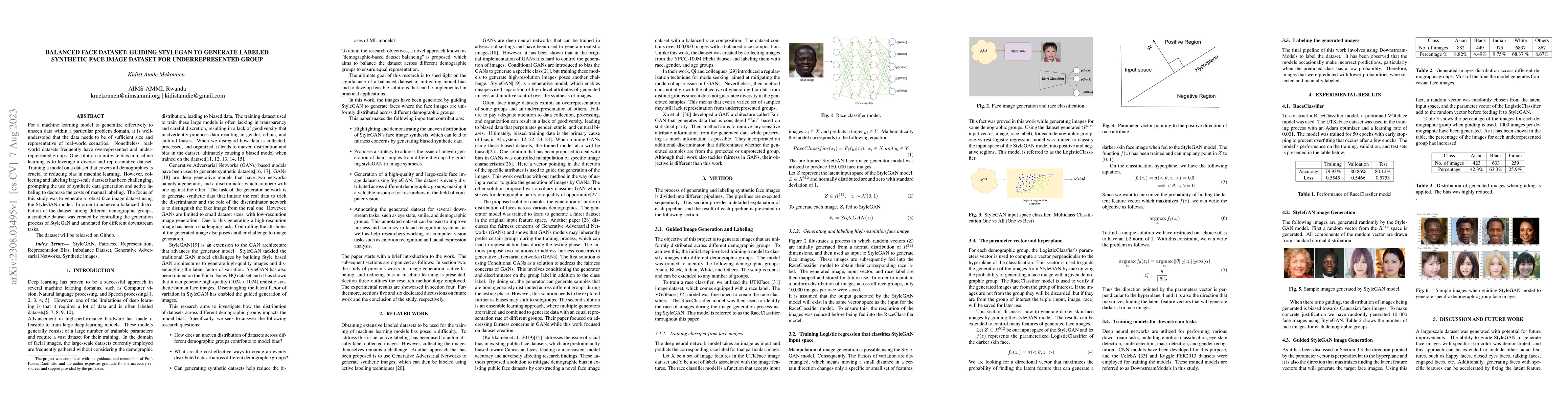 This study generates a balanced face image dataset using StyleGAN to address underrepresented groups in real-world datasets, employing synthetic data generation and active labeling to reduce manual labeling costs and mitigate bias in machine learning models. The synthetic dataset is controlled and annotated to ensure demographic representation for diverse downstream tasks.