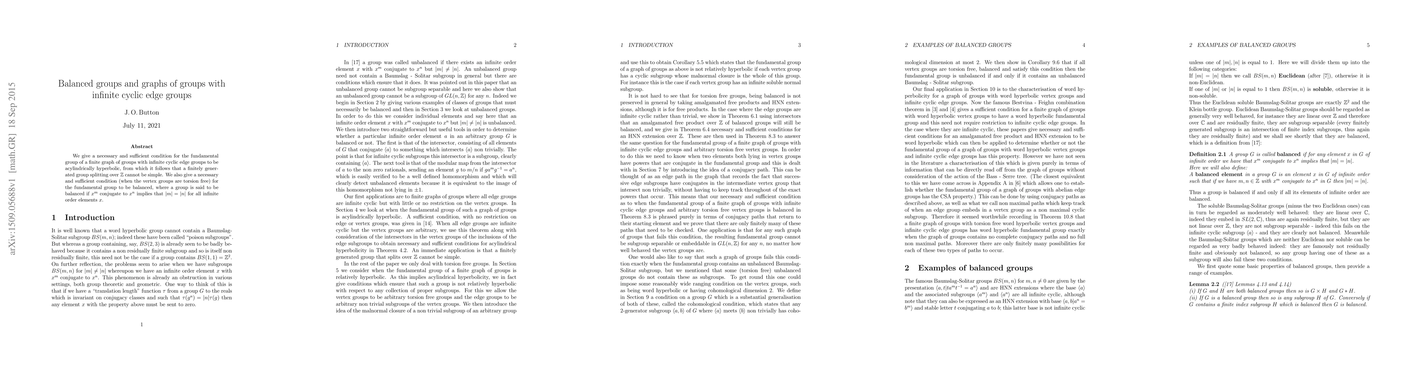 A research paper establishes conditions for a finite graph of groups with infinite cyclic edge groups to be acylindrically hyperbolic or balanced, showing that finitely generated groups splitting over Z cannot be simple.